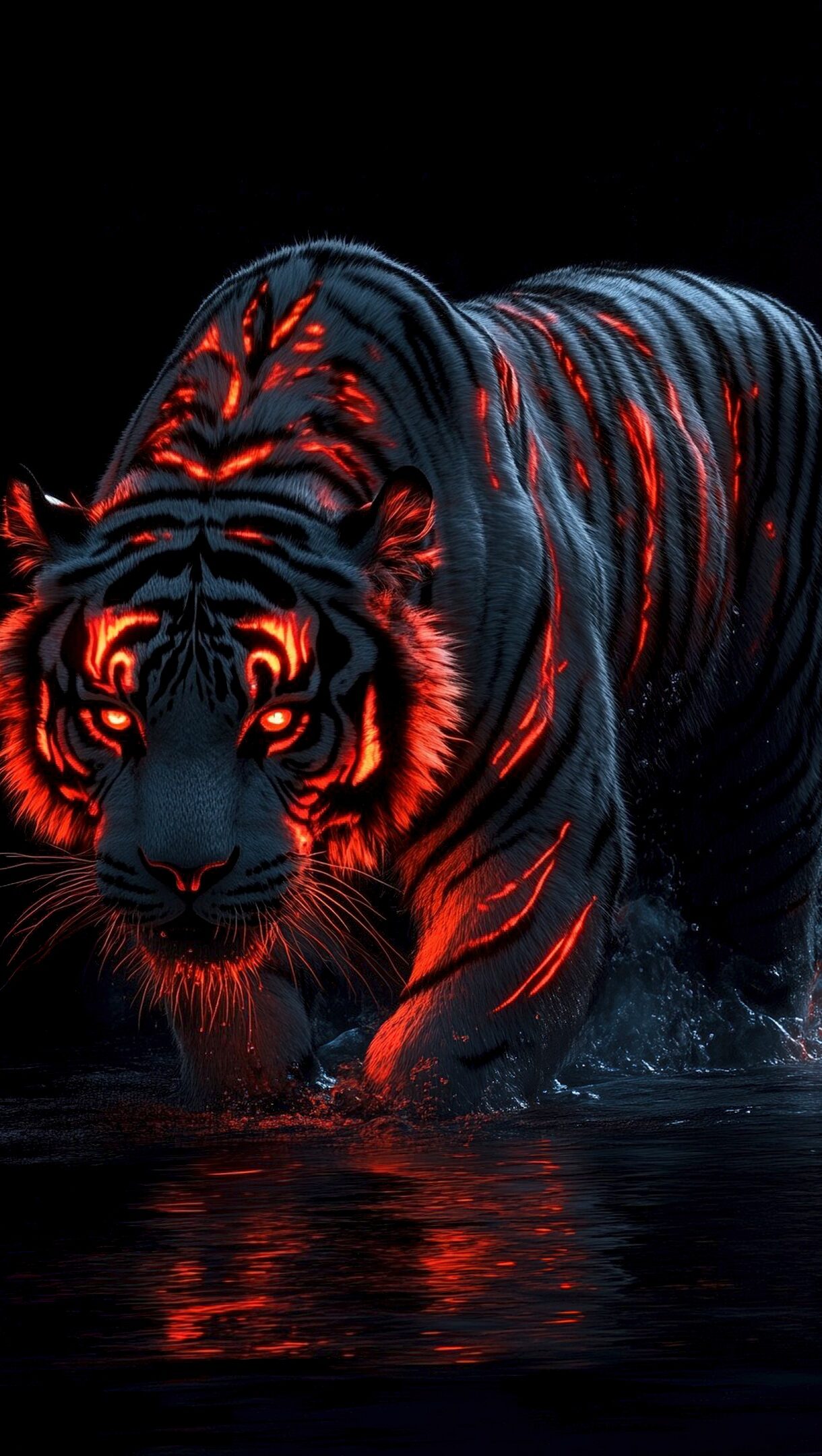 A captivating 4K wallpaper featuring a fierce and detailed tiger in vibrant colors. The stunning image showcases the tiger's intense gaze and powerful presence, perfect for enhancing any desktop or mobile background.