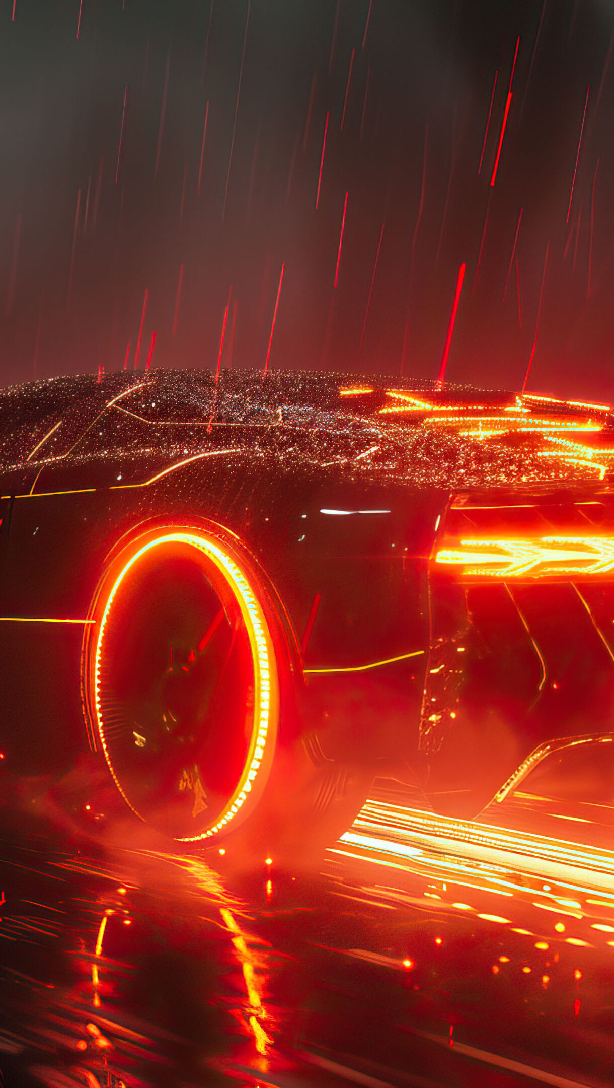 A mesmerizing 4K wallpaper showcases a striking red supercar illuminated against the backdrop of the night. Simply click the download button to bring this masterpiece to life on your screen as a desktop wallpaper or save it for later in your picture collection.