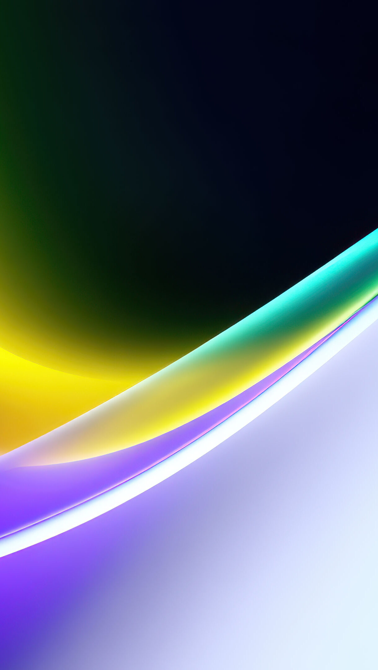 A vibrant 4K wallpaper showcasing an intricate composition of flowing, wavy abstract shapes. Luminous gradients of yellow, deep purple, and bright cyan hues cascade across the frame, creating a captivating sense of fluid depth within this compelling digital art.