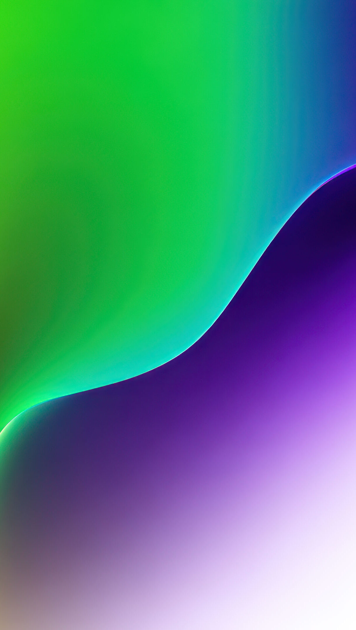 A captivating 4K wallpaper presents an abstract gradient in vibrant green and deep purple, evoking the sleek design aesthetic of Windows 11, flowing across a crisp white backdrop. A glowing, serpentine curve sharply defines the transition from the rich colors to the pure white, adding a dynamic and elegant flair.