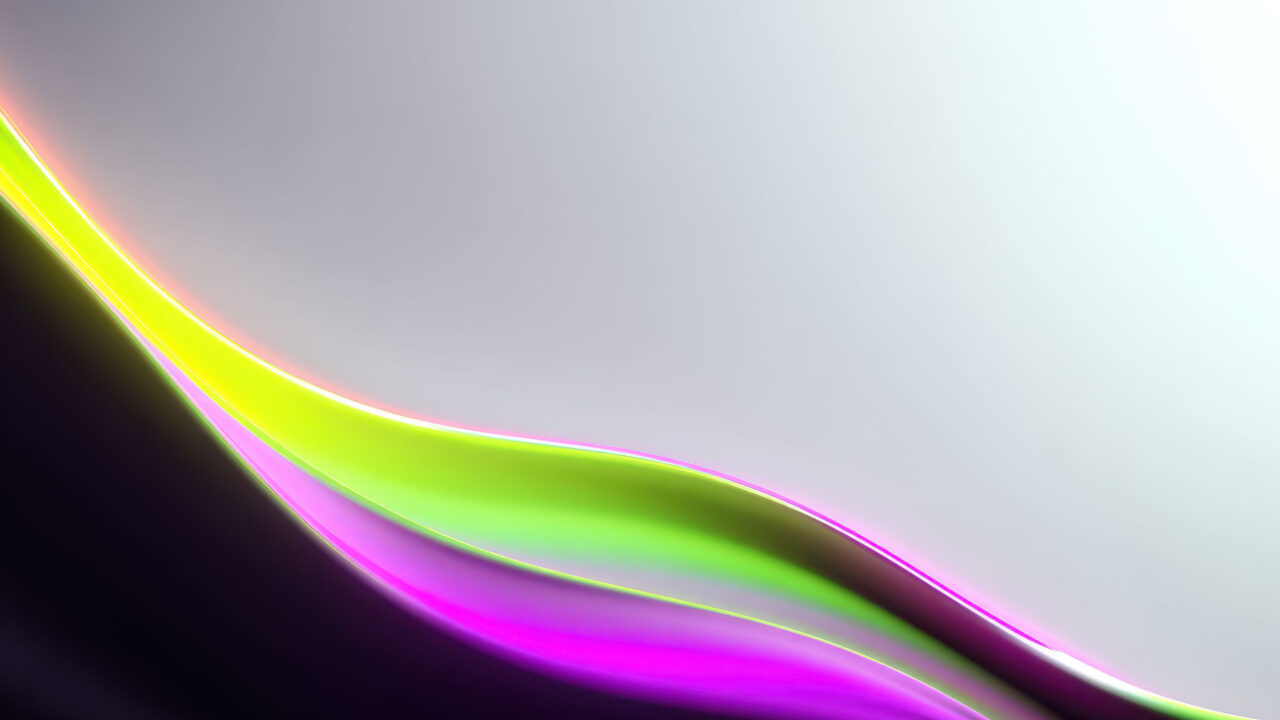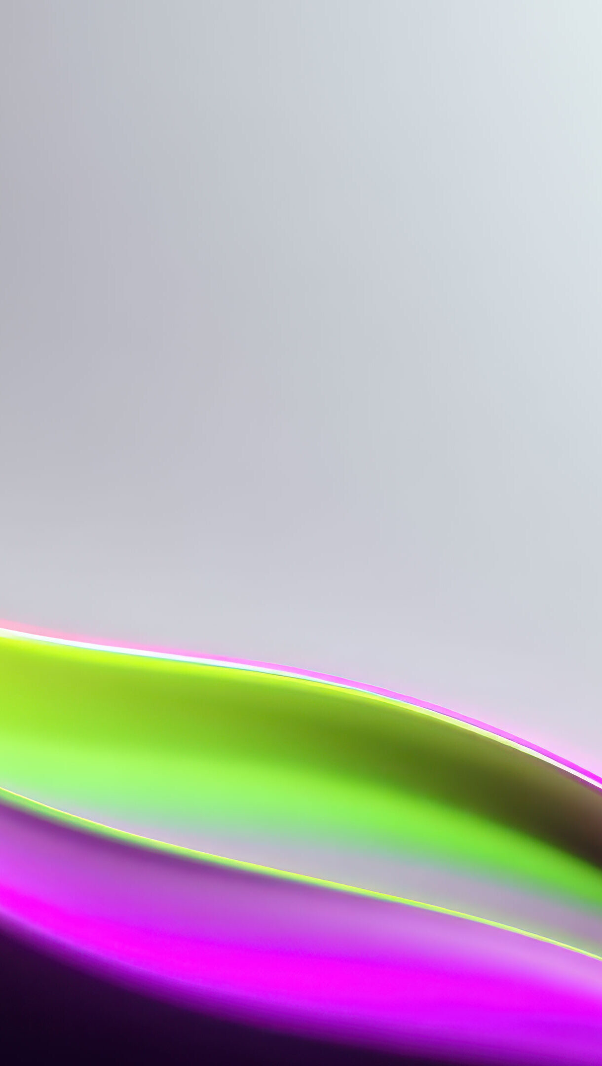 A vibrant 4K wallpaper showcasing an abstract neon gradient wave sweeping across a clean, bright white background. Its luminous, flowing form transitions smoothly from vivid lime green and magenta to deep purple, creating a dynamic, modern aesthetic.