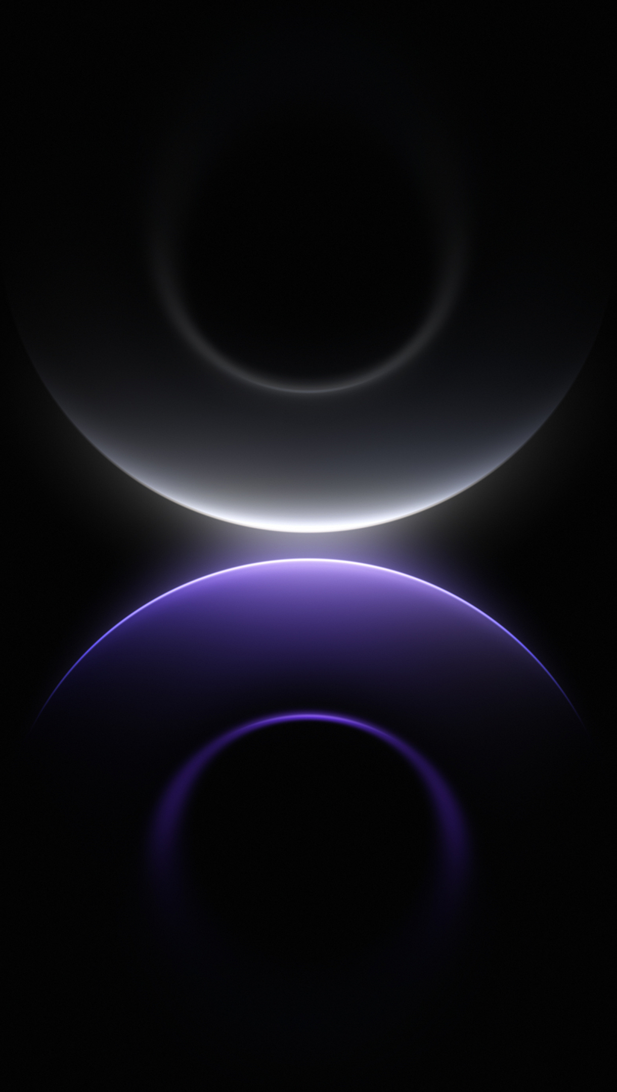 A captivating 4K wallpaper showcases abstract purple and white glowing arcs against a dark background. Their soft, luminous edges create a striking interplay of light and shadow, evoking a tranquil and futuristic mood.