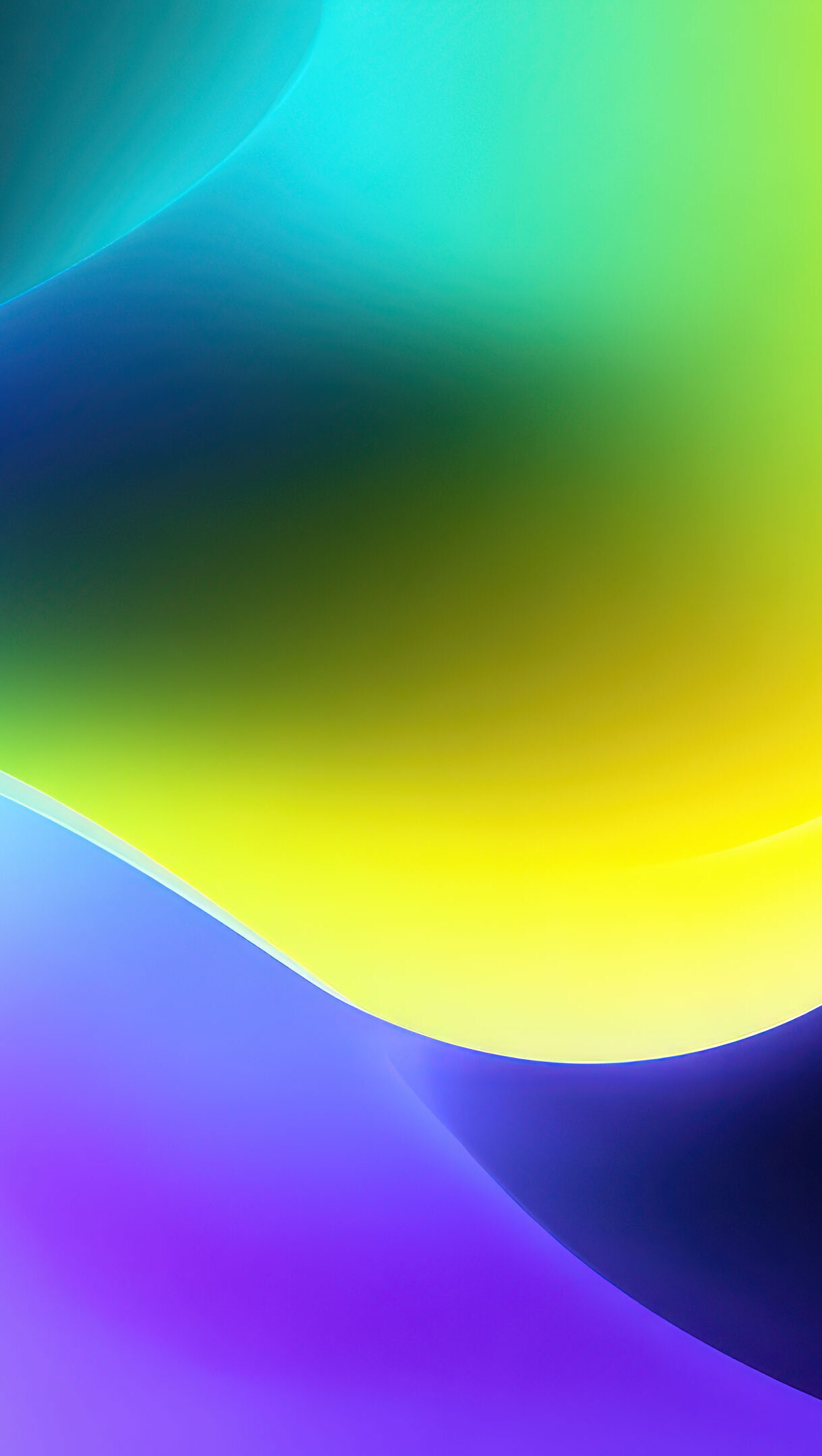 A mesmerizing 4K wallpaper showcases abstract wavy gradient forms in a vibrant digital art composition. Its glowing bands of teal, blue, purple, and yellow seamlessly flow and undulate, creating a dynamic and immersive visual effect.
