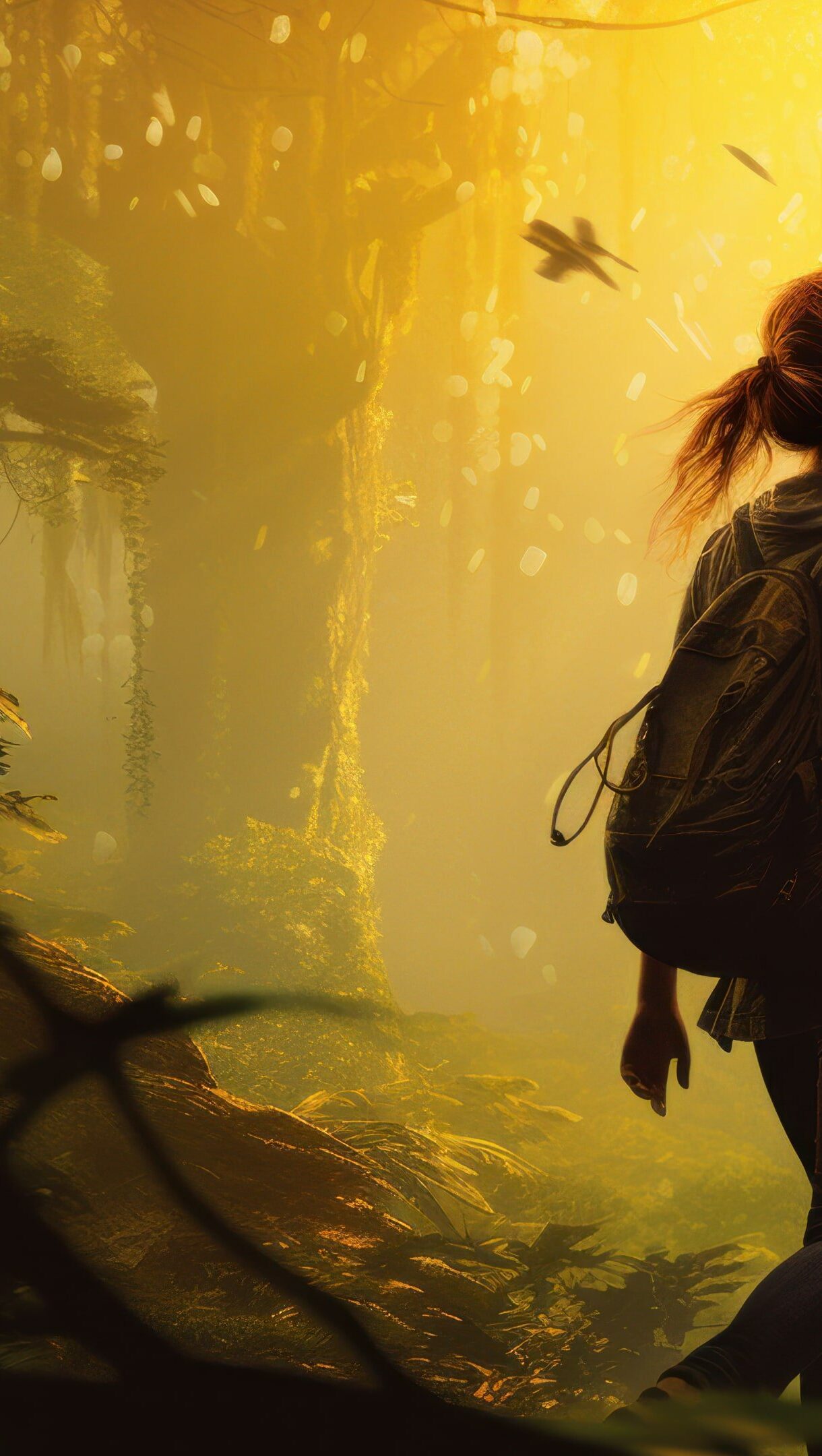 Adventurous Woman Wandering In The Forest 4K Wallpaper
