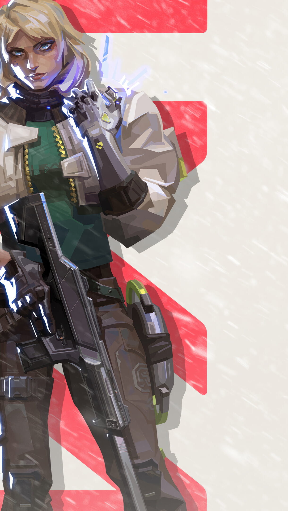 A dynamic 4K wallpaper showcasing the formidable Agent Deadlock from the popular game Valorant, ready for action with an intense and determined look. Simply click the download button to bring this masterpiece to life on your screen as a desktop wallpaper or save it for later in your picture collection.