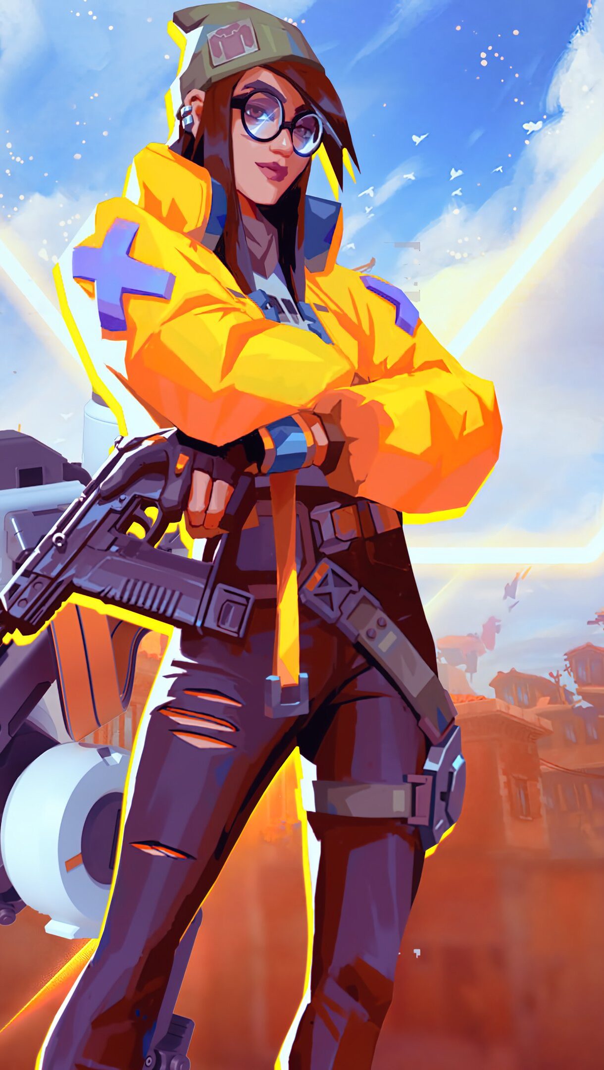 A captivating 4K wallpaper showcasing Agent Killjoy from Valorant, the tactical first-person shooter game. Killjoy, the inventive German genius, stands ready in this beautifully rendered artwork, highlighting her unique gadgets and tech-savvy expertise. Simply click the download button to bring this masterpiece to life on your screen as a desktop wallpaper or save it for later in your picture collection.