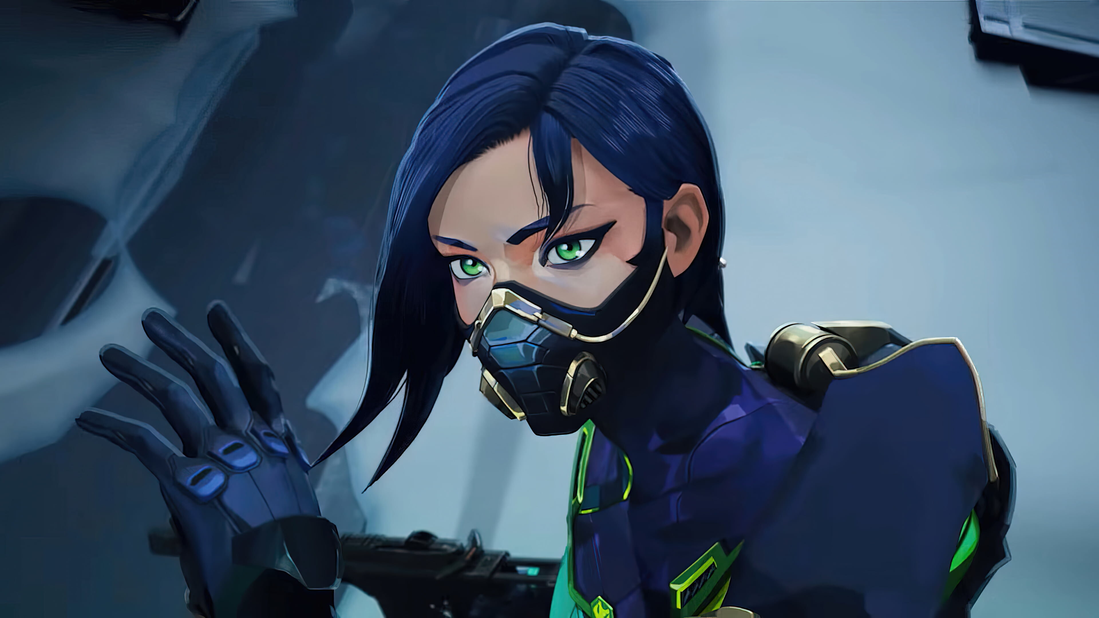 A striking 4K wallpaper showcasing Agent Viper from the popular game Valorant. Viper, a skilled chemist and toxin specialist, is ready for action with her unique abilities. Simply click the download button to bring this masterpiece to life on your screen as a desktop wallpaper or save it for later in your picture collection.