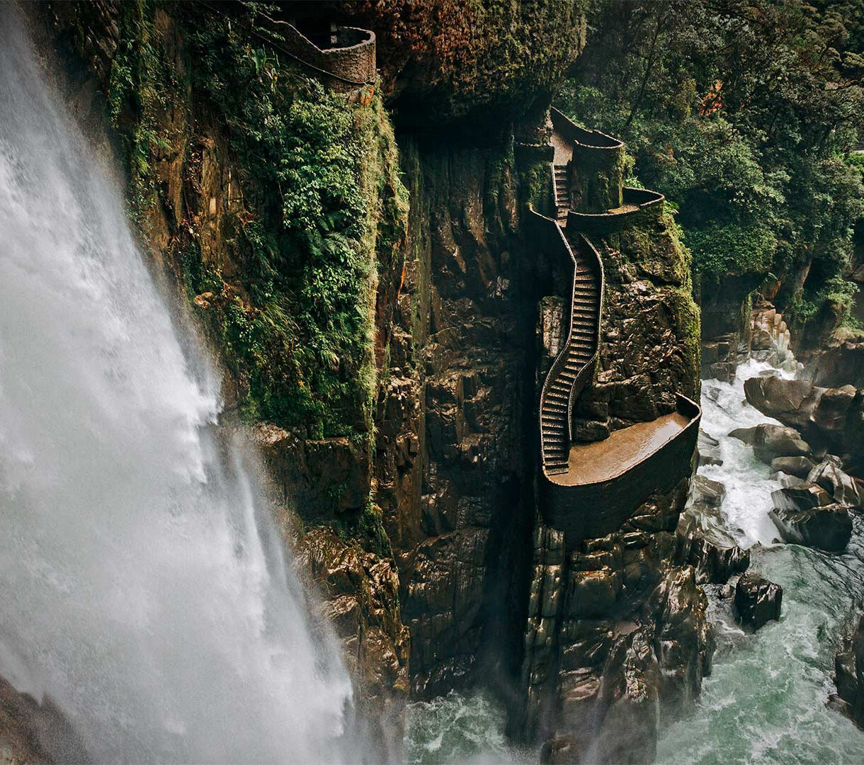 Agoyán Waterfall Baños de Agua Santa Ecuador Cliffs and Stairs Wallpaper