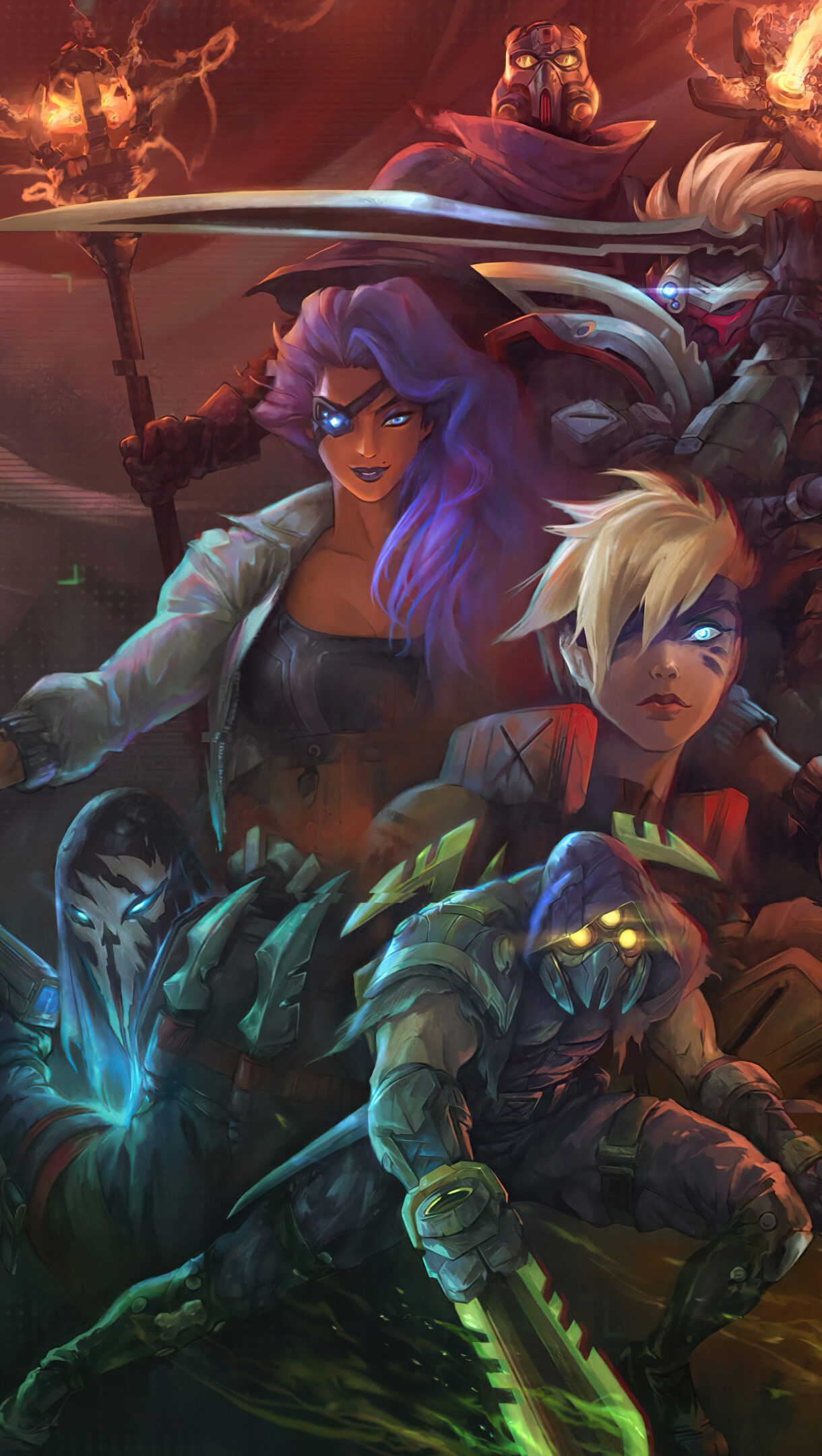 A captivating 4K wallpaper featuring the PsyOps skins from League of Legends. This wallpaper showcases Zed, Pyke, Vi, Samira, Ezreal, Shen, Kayle, Master Yi, Viktor, and Sona in their stunning PsyOps outfits, ready for action in the battlefield. Simply click the download button to bring this masterpiece to life on your screen as a desktop wallpaper or save it for later in your picture collection.
