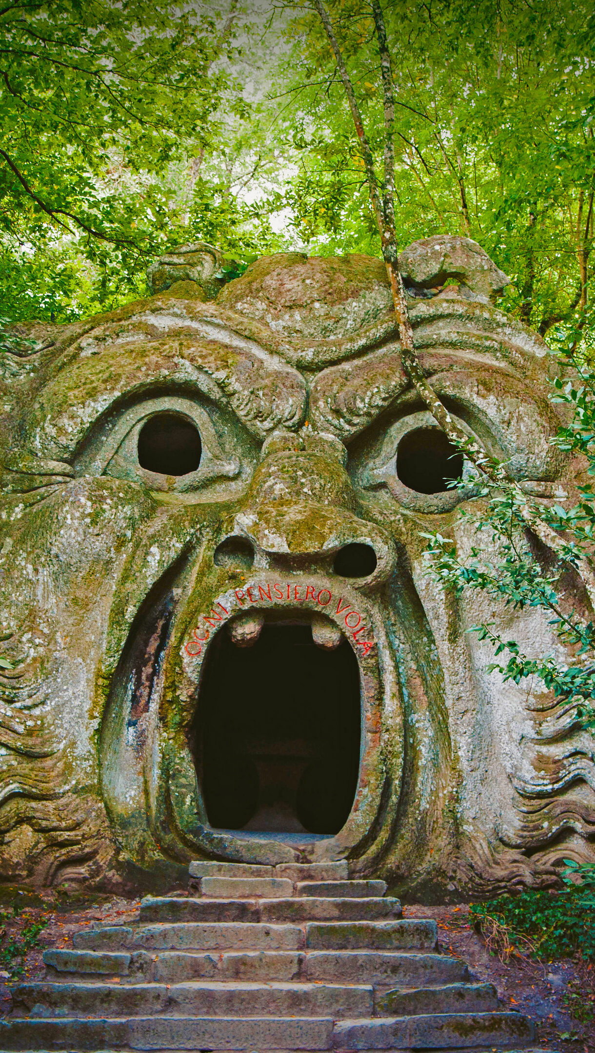 Ancient Orcus Stone Face Sculpture Gardens of Bomarzo, Italy Wallpaper