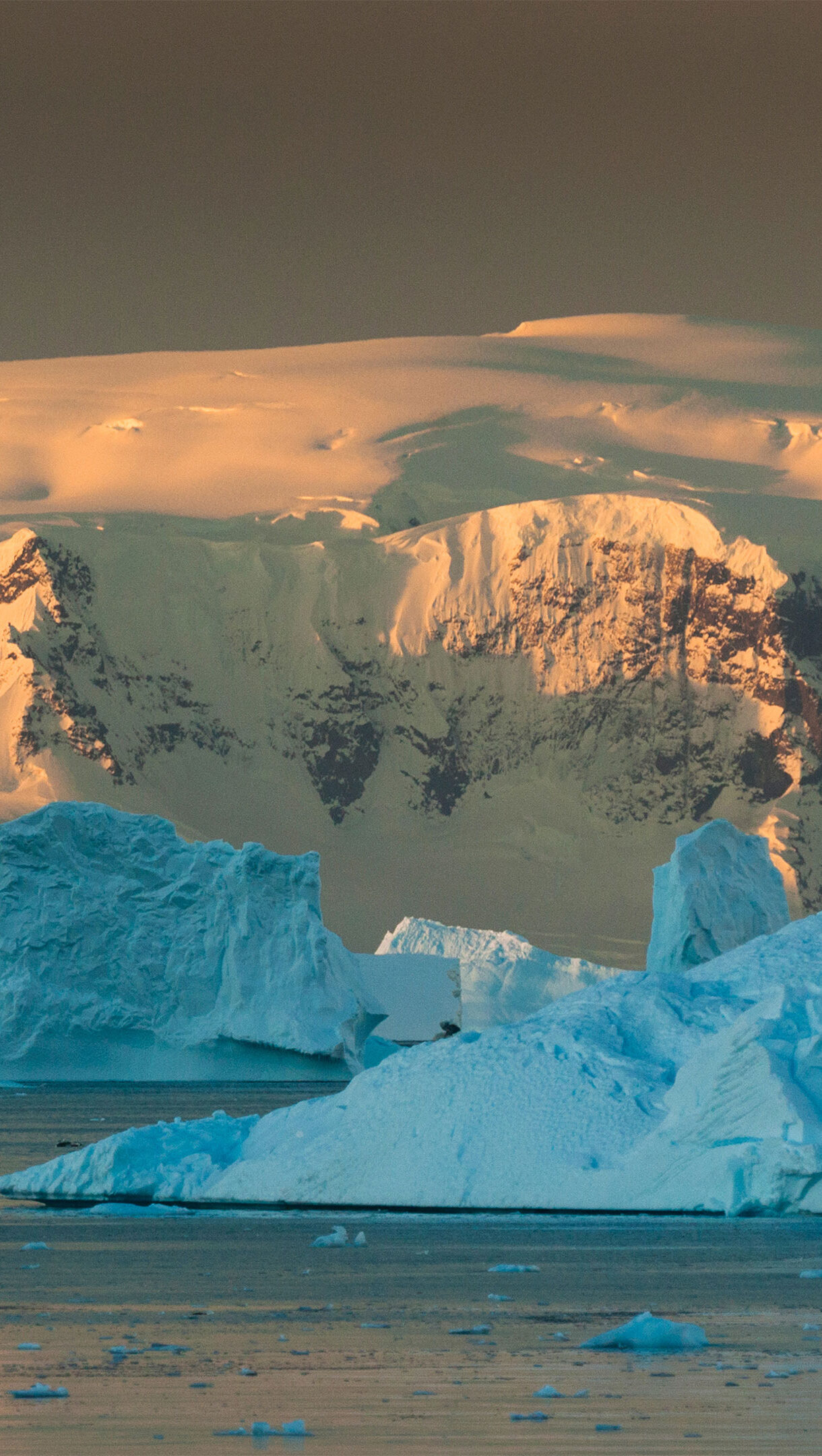 Antarctica Icebergs Snowy Mountains Sunset Wallpaper