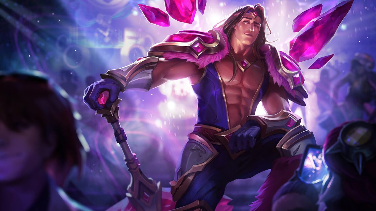 A captivating 4K wallpaper featuring the Armor of the Fifth Age Taric skin from League of Legends. Taric, a radiant champion, is showcased in his dazzling armor with vibrant colors and intricate details. Simply click the download button to bring this masterpiece to life on your screen as a desktop wallpaper or save it for later in your picture collection.