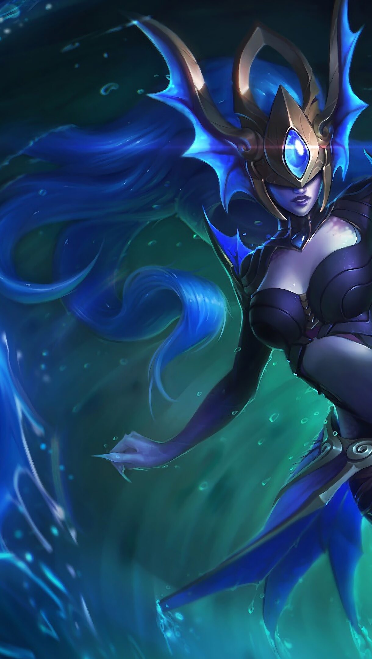 A mesmerizing 4K wallpaper showcasing the Atlantean Syndra skin from League of Legends. Syndra, the powerful mage, is depicted in her aquatic-themed skin, surrounded by swirling water and arcane energy. Simply click the download button to bring this masterpiece to life on your screen as a desktop wallpaper or save it for later in your picture collection.