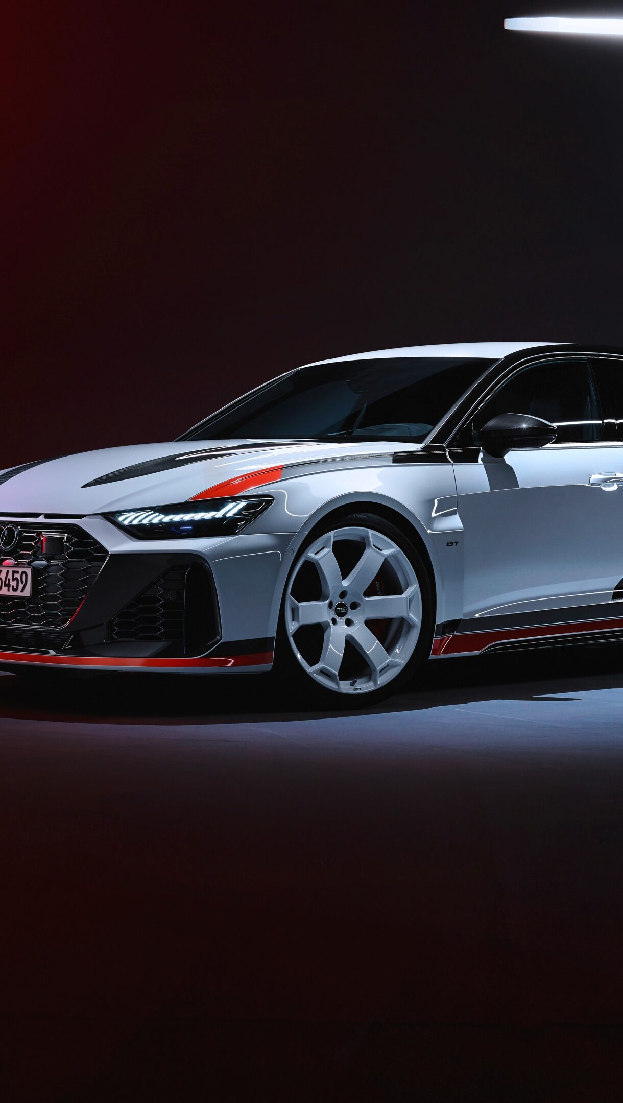 A sleek 4K wallpaper featuring the Audi RS 6 Avant GT, a high-performance luxury car with a captivating design. The dynamic lines and sporty silhouette of this automotive masterpiece are showcased in high resolution, making it an excellent choice for your desktop or mobile background. Simply click the download button to bring this masterpiece to life on your screen as a desktop wallpaper or save it for later in your wallpaper collection.