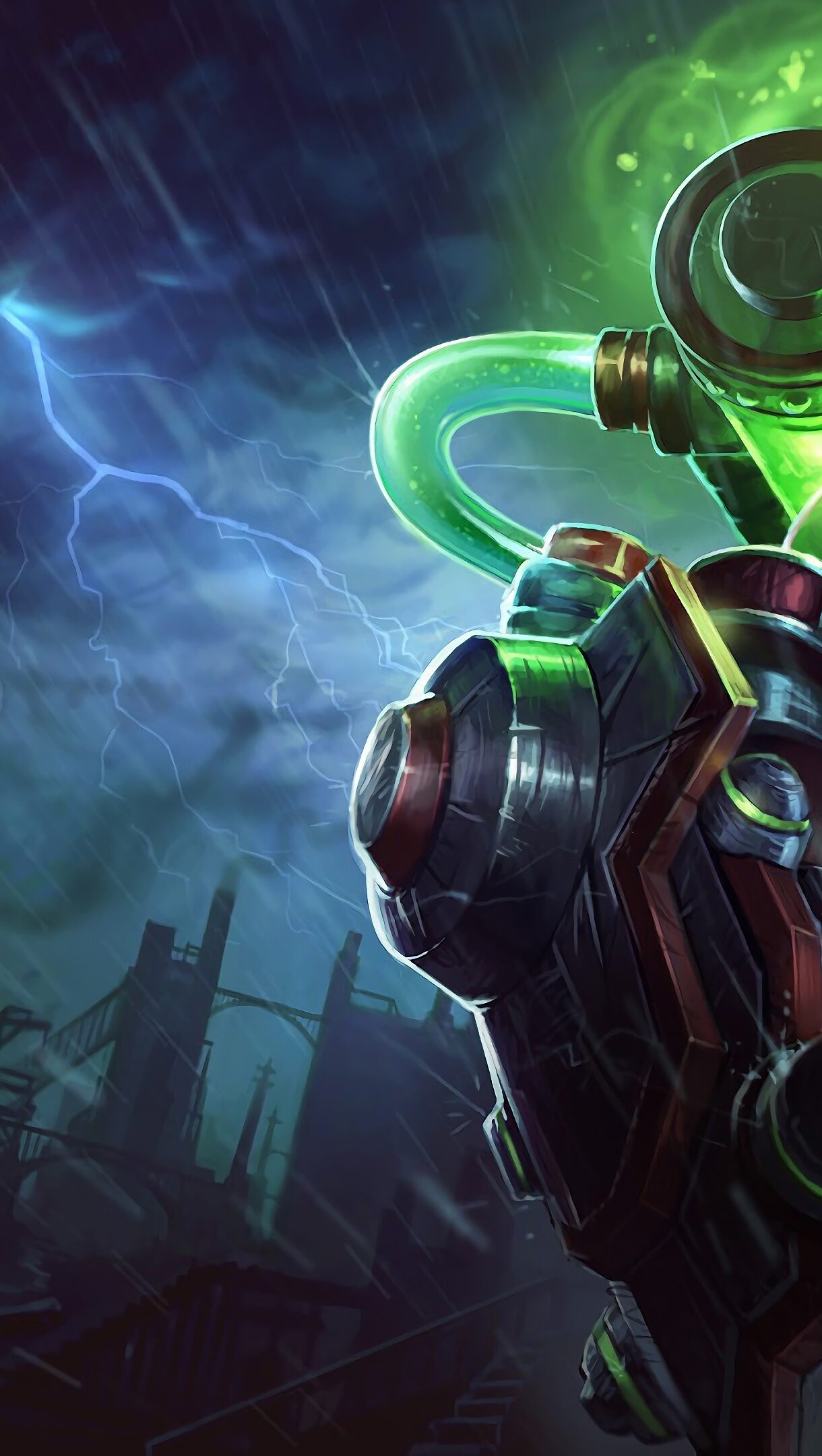 A captivating 4K wallpaper showcasing the Augmented Singed skin from League of Legends. Singed, the Mad Chemist, is depicted in his augmented form, with enhanced armor and futuristic technology. Simply click the download button to bring this masterpiece to life on your screen as a desktop wallpaper or save it for later in your picture collection.