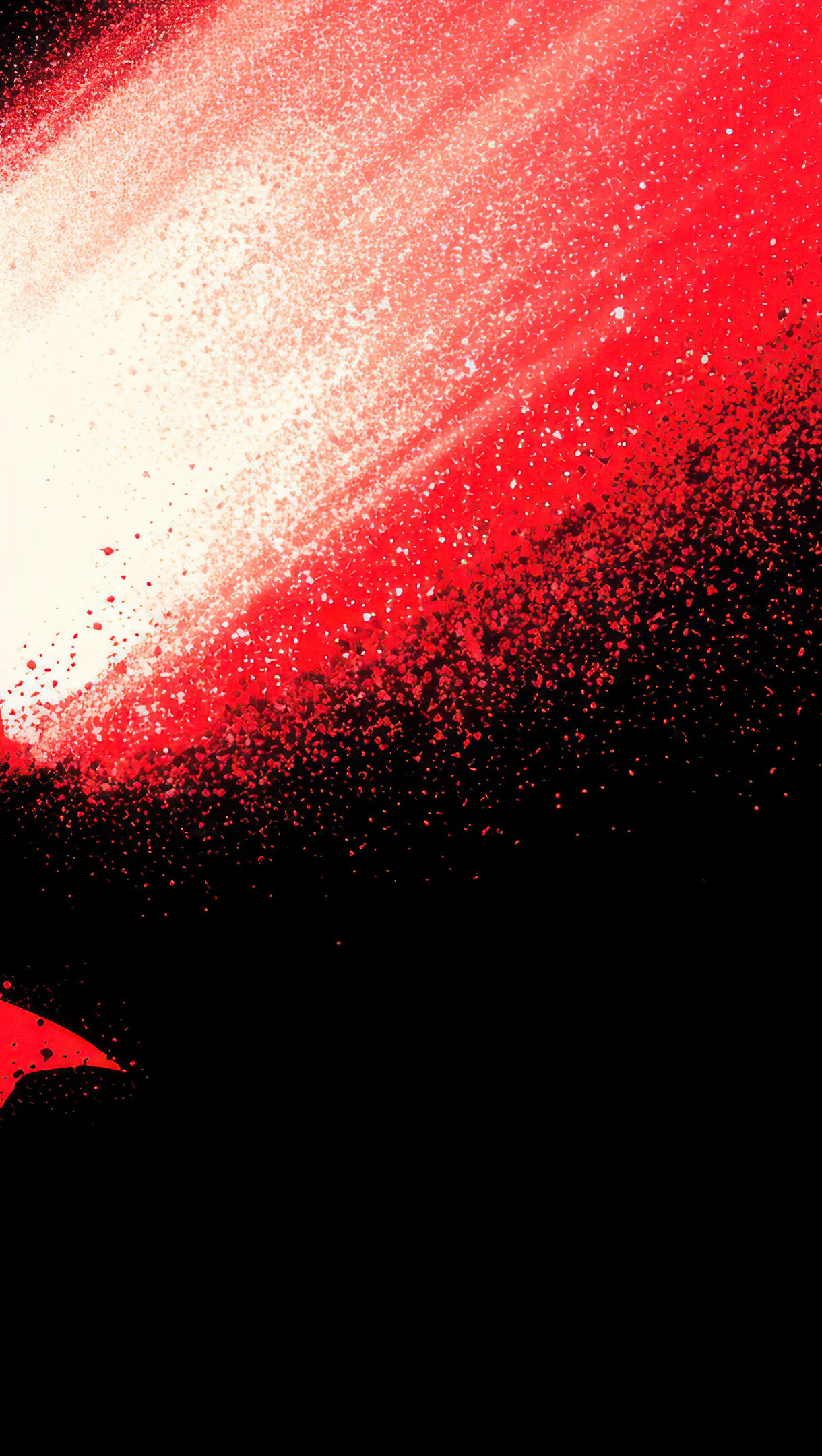 A striking 4K wallpaper depicting Batman's dark silhouette, with glowing white eyes, against a dramatic backdrop of red and white paint splatter on a deep black field. The iconic red Batman logo, also created with a textured splatter effect, sits prominently below, enhancing the artwork's brooding and powerful aesthetic.