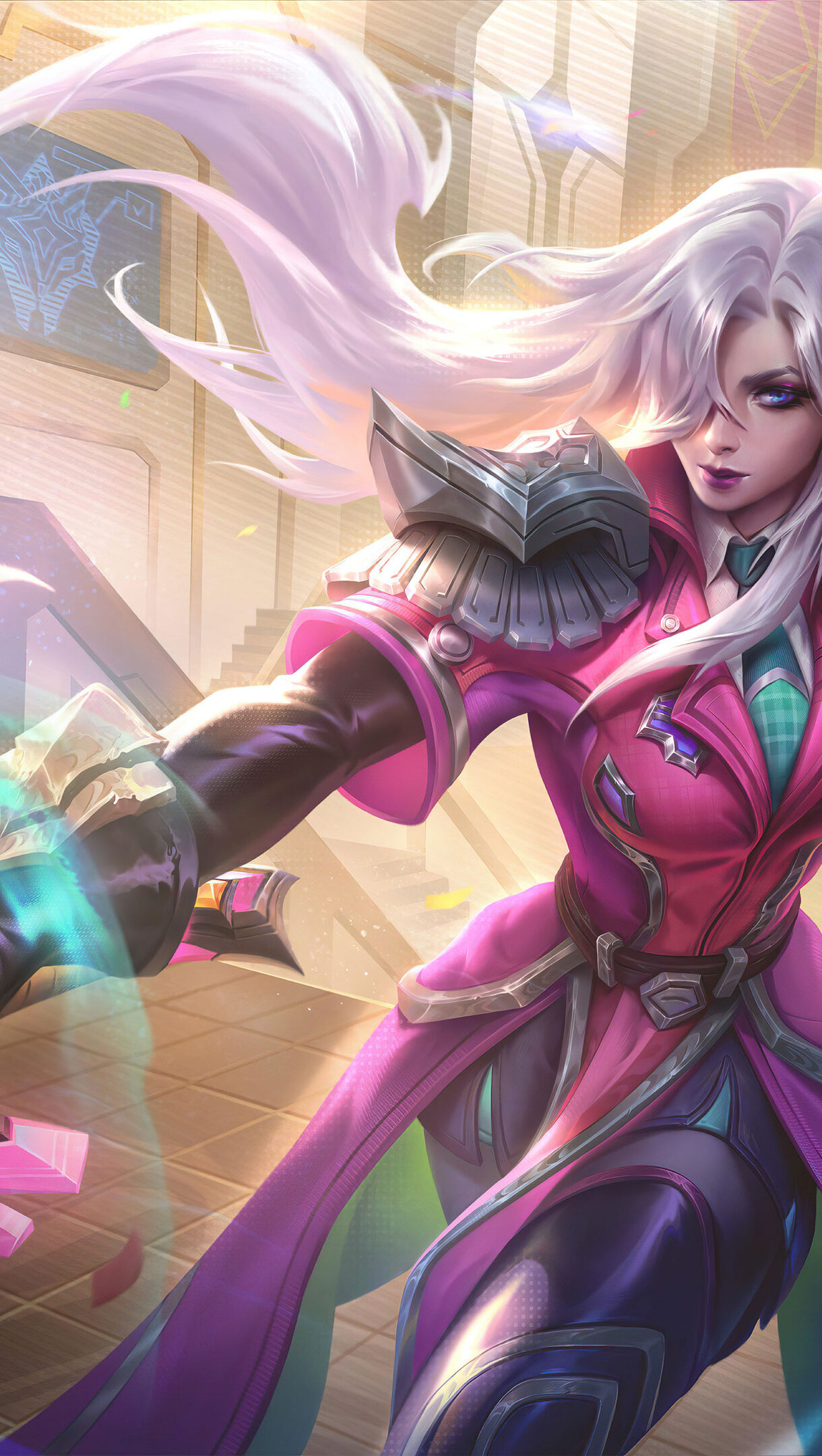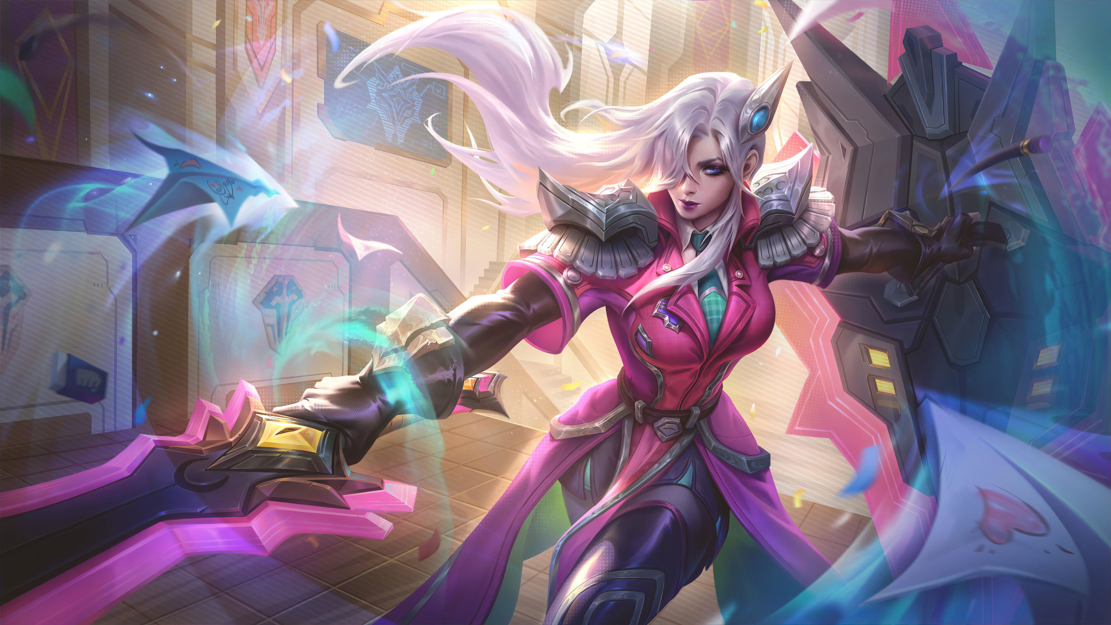 A stunning 4K wallpaper featuring the Battle Academia Leona Rose Quartz Chroma skin from League of Legends. Leona, the radiant warrior, is depicted in her vibrant Rose Quartz Chroma, exuding strength and elegance in her heroic stance.