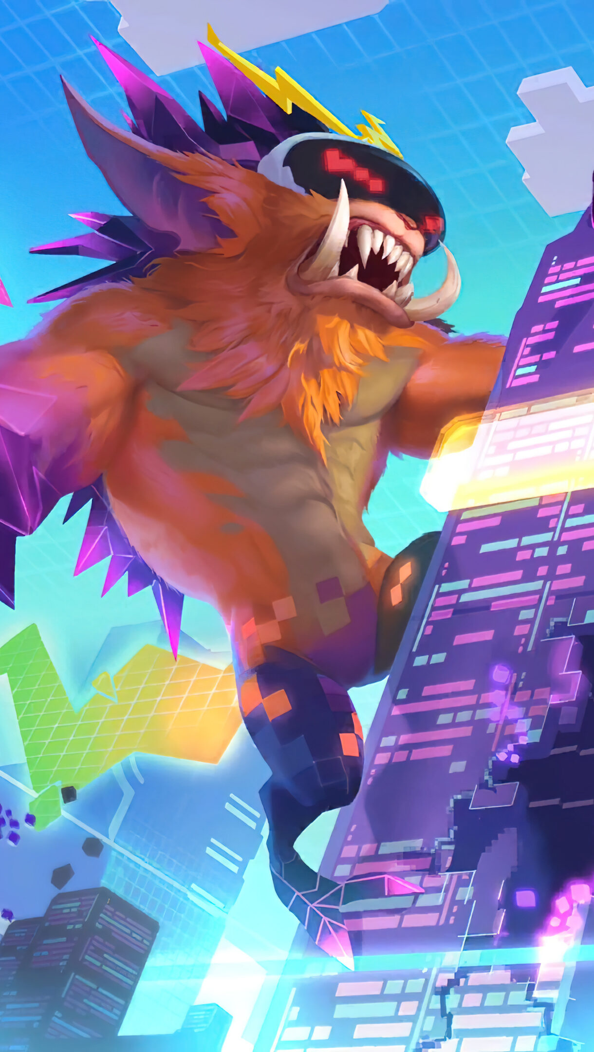 A stunning 4K wallpaper featuring the Battle Boss Gnar skin from League of Legends. Gnar, the mischievous yordle, is transformed into a formidable boss with unique abilities and a menacing appearance in this legendary skin. Simply click the download button to bring this masterpiece to life on your screen as a desktop wallpaper or save it for later in your picture collection.
