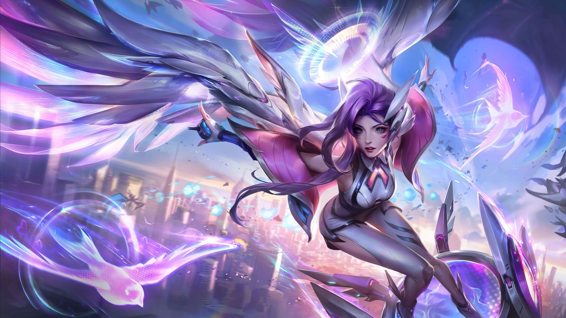 A mesmerizing 4K wallpaper featuring the Battle Dove Seraphine skin from League of Legends. Seraphine, the enchanting songstress, radiates harmony and grace amidst a backdrop of celestial doves and ethereal light, capturing the essence of her mystical presence in the League of Legends universe. Simply click the download button to bring this masterpiece to life on your screen as a desktop wallpaper or save it for later in your picture collection.