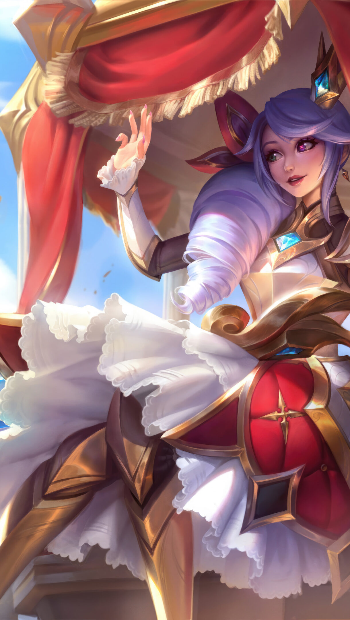 A stunning 4K wallpaper featuring the Battle Queen Gwen skin from League of Legends. Gwen, the Hallowed Seamstress, is depicted in regal armor, wielding her giant scissors with elegance and power, set against a vibrant backdrop that highlights her royal and fierce presence in the world of Runeterra.