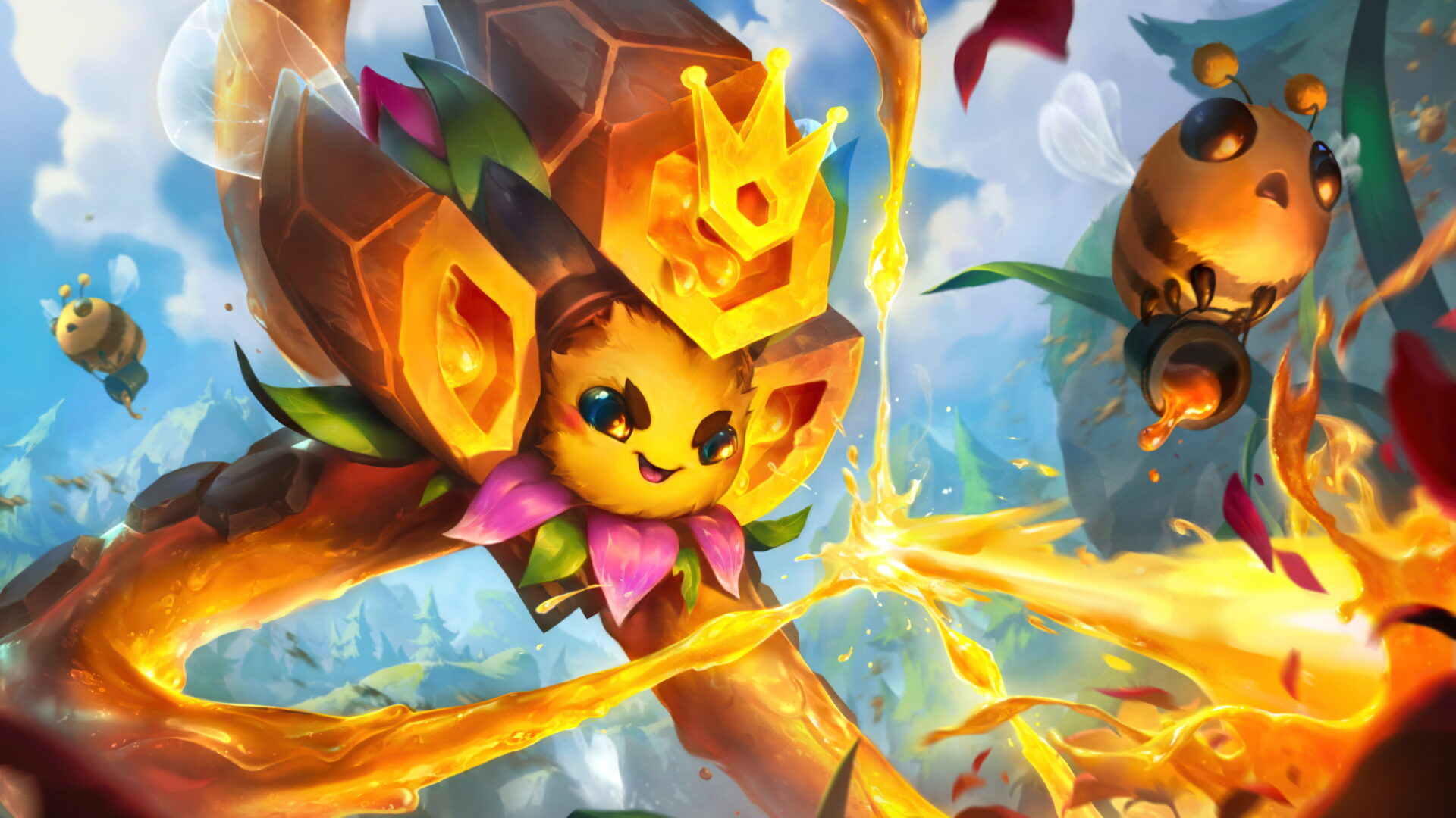 A mesmerizing 4K wallpaper showcasing the Bee'Koz Vel'Koz skins in League of Legends. Vel'Koz, the Voidborn champion, appears in a stunning bee-themed outfit, surrounded by vibrant colors and intricate details. Simply click the download button to bring this masterpiece to life on your screen as a desktop wallpaper or save it for later in your picture collection.
