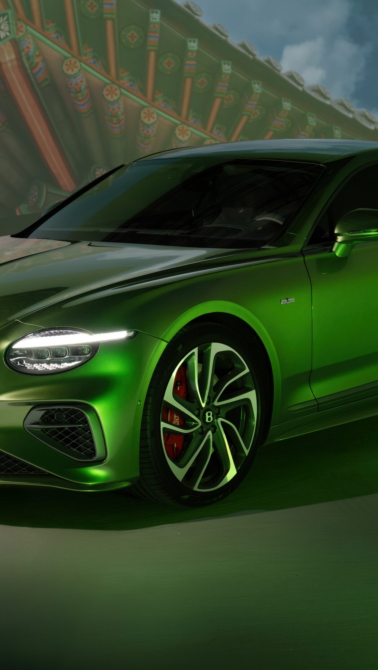 A captivating 4K wallpaper showcasing a sleek, silver Bentley Continental parked elegantly on a subtly blurred city street at dusk. The warm glow of streetlights reflects off its polished chrome accents, emphasizing its luxurious contours and sophisticated presence.