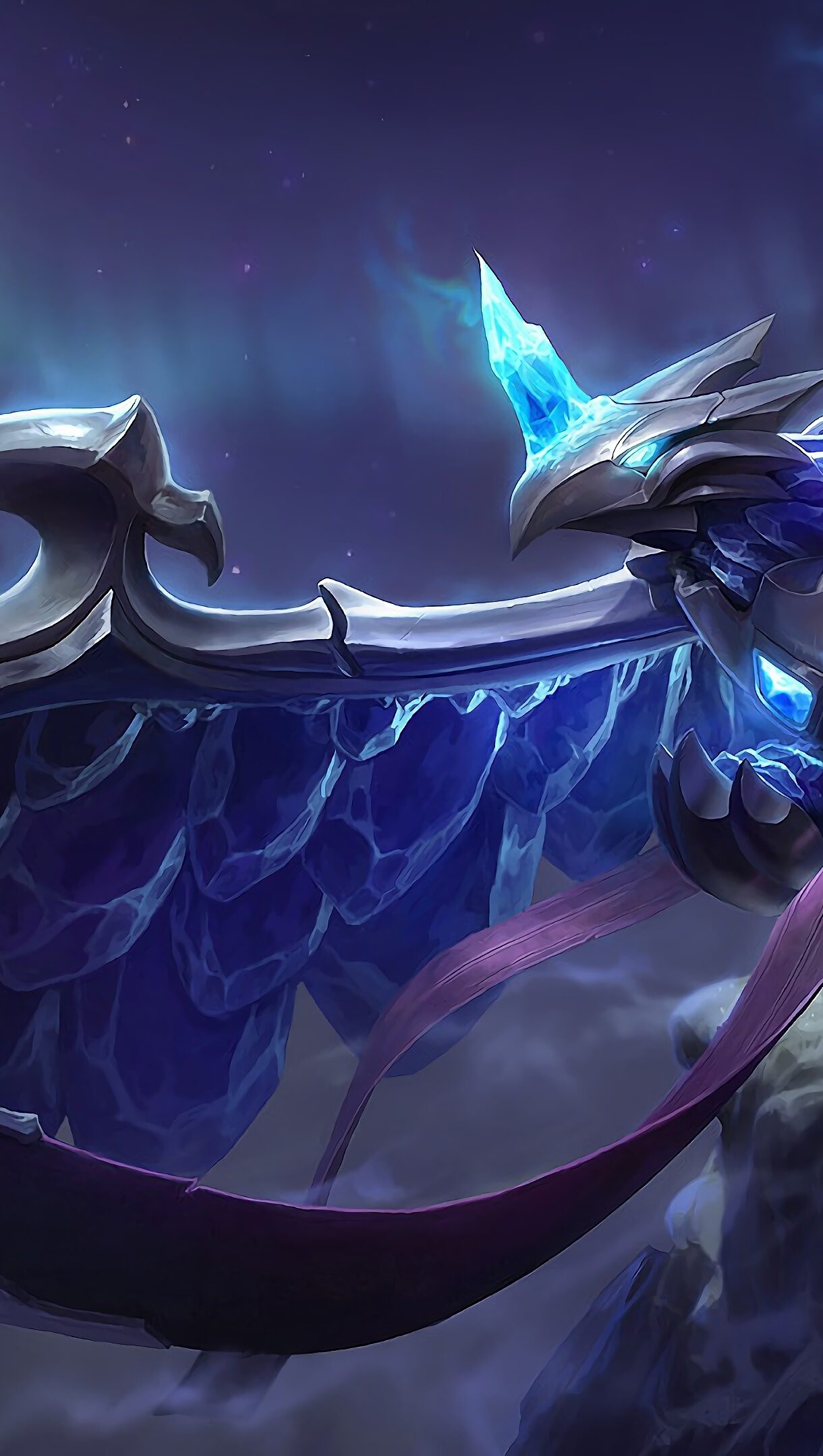 A captivating 4K wallpaper featuring the Blackfrost Anivia skin from League of Legends. Anivia, the Cryophoenix, is depicted in her icy form, emanating a chilling aura in a frozen landscape. Simply click the download button to bring this masterpiece to life on your screen as a desktop wallpaper or save it for later in your picture collection.