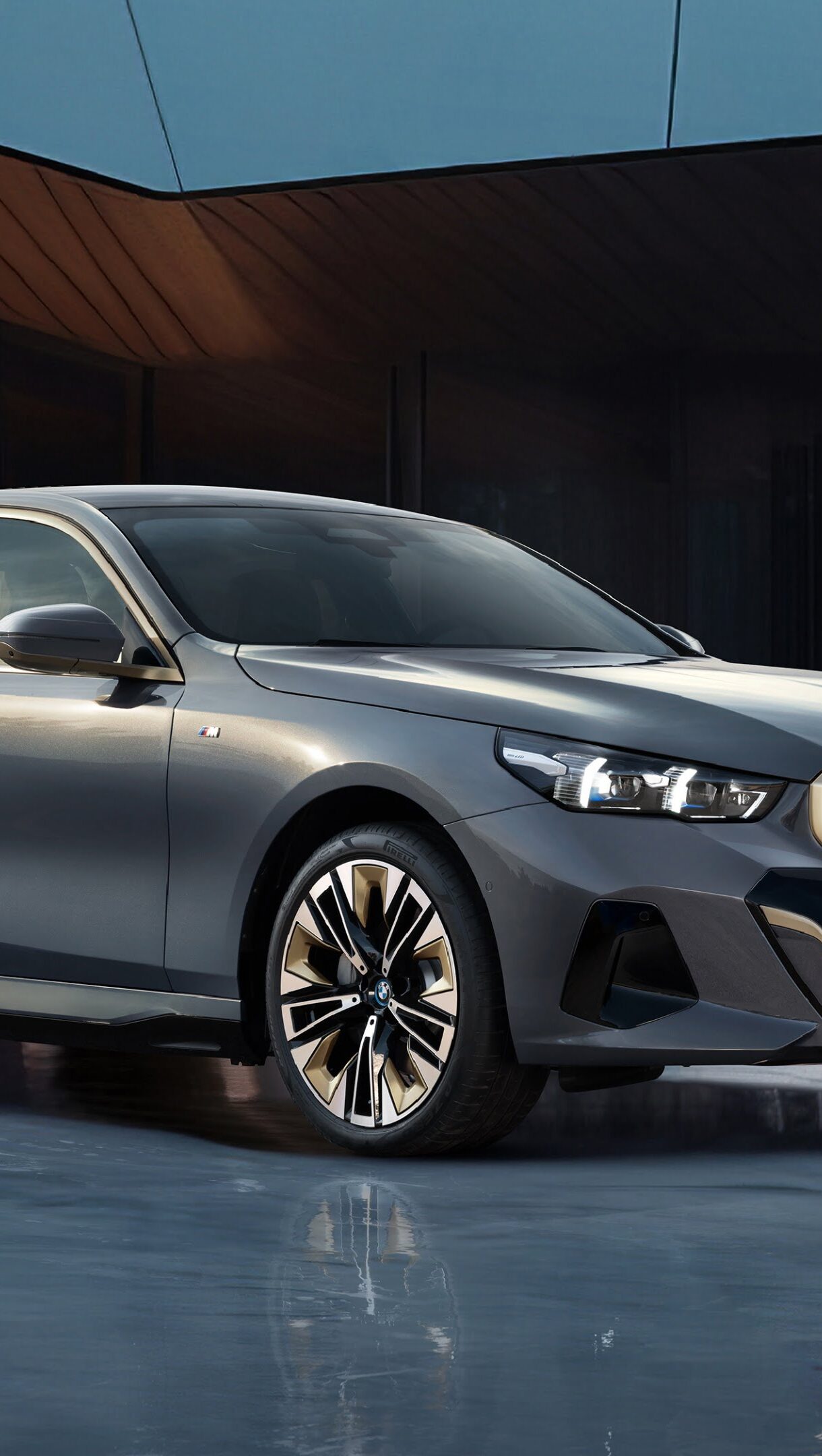 A dynamic 4K wallpaper featuring the BMW i5 M, a luxurious sports car known for its high-performance capabilities and modern design, perfect for car enthusiasts and desktop customization. Simply click the download button to bring this masterpiece to life on your screen as a desktop wallpaper or save it for later in your picture collection.