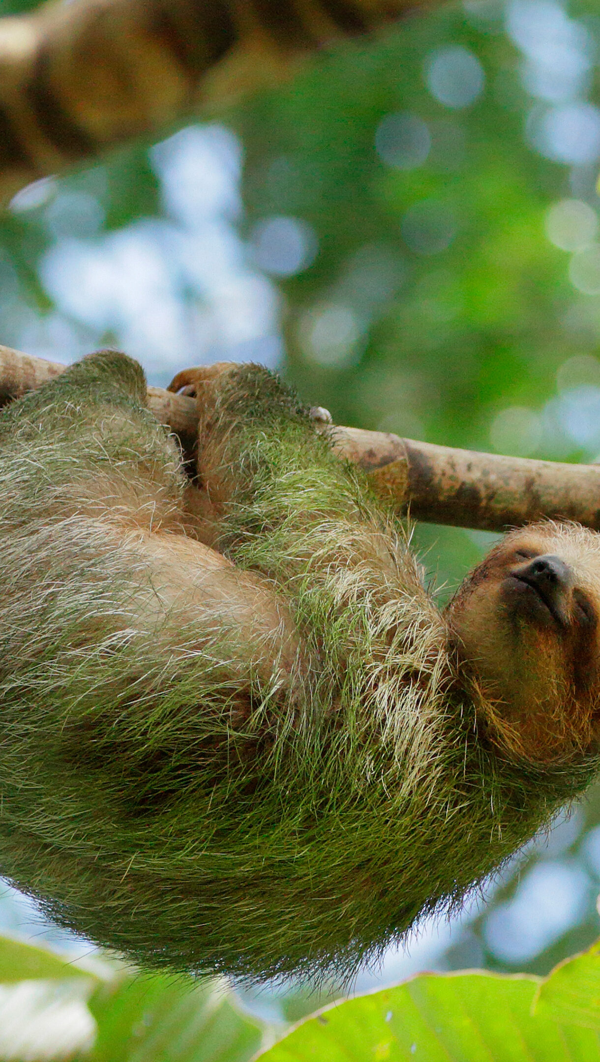 Brown-throated Three-toed Sloth Sleeping On Tree Branch Wallpaper