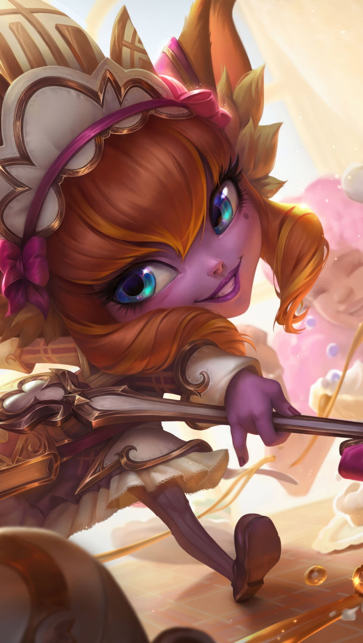 An adorable 4K wallpaper showcasing the delightful Cafe Cuties Lulu skin, featuring Lulu, the Fae Sorceress, amidst a charming cafe setting in the whimsical world of League of Legends. Simply click the download button to bring this masterpiece to life on your screen as a desktop wallpaper or save it for later in your picture collection.