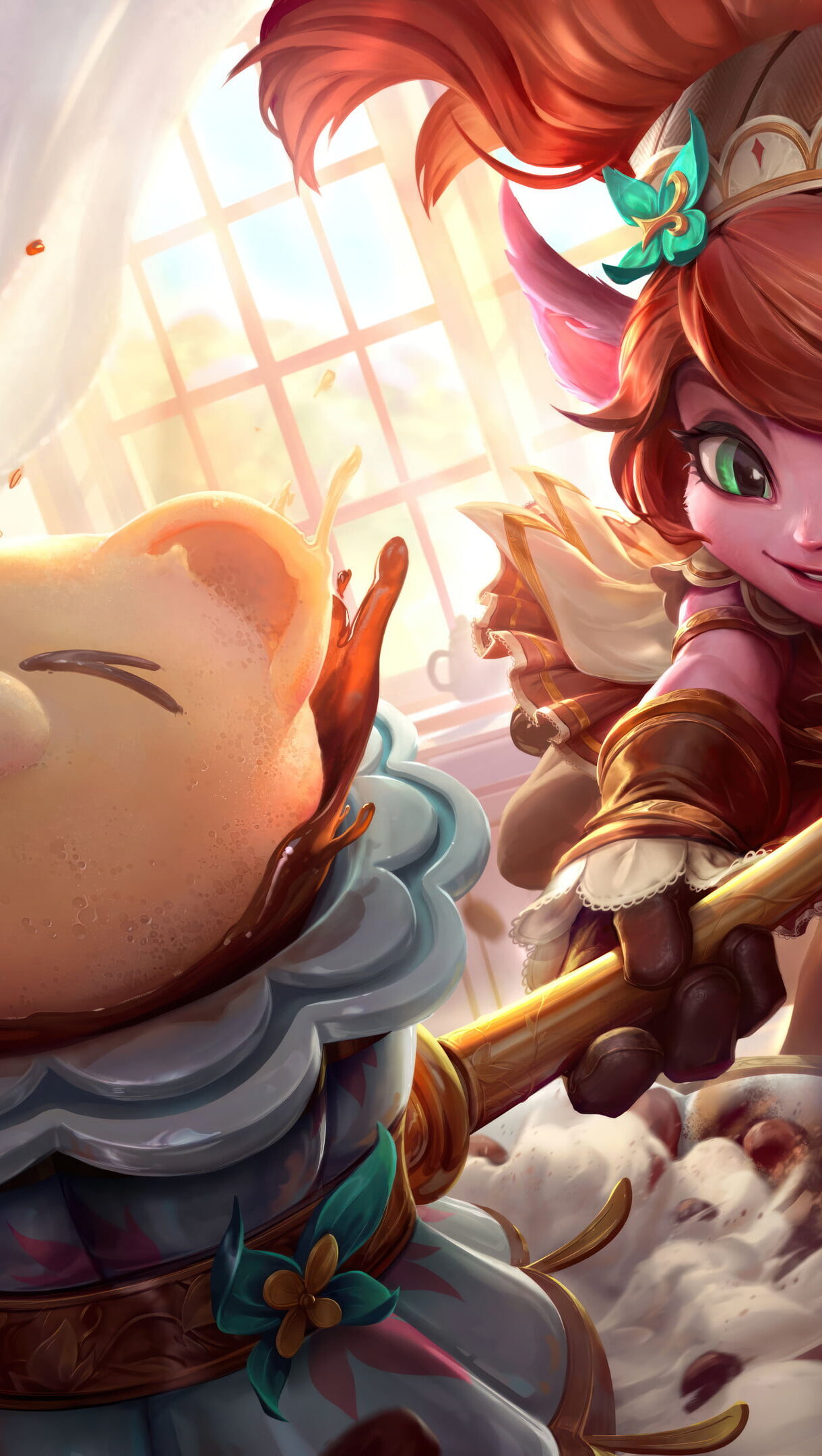 A delightful 4K wallpaper featuring the charming Cafe Cuties Poppy skin, showcasing Poppy, the Keeper of the Hammer, in an adorable cafe-themed setting within the vibrant world of League of Legends. Simply click the download button to bring this masterpiece to life on your screen as a desktop wallpaper or save it for later in your picture collection.