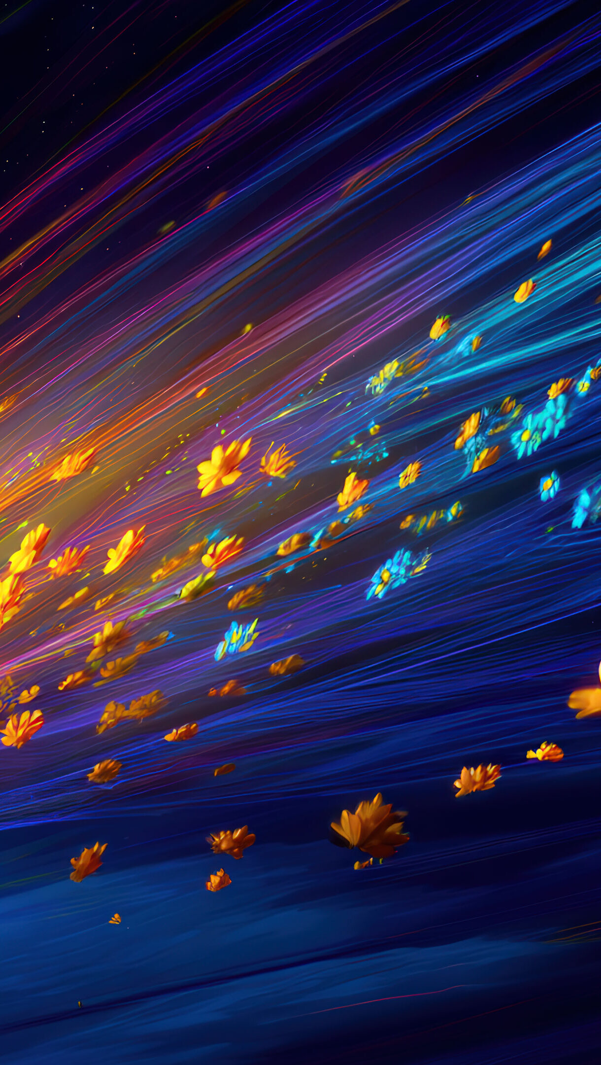 A mesmerizing digital painting depicts a river of luminous, otherworldly flowers flowing through a vibrant cosmic landscape. Streaks of stardust and glowing nebulae illuminate the scene, creating a magical and serene celestial garden.