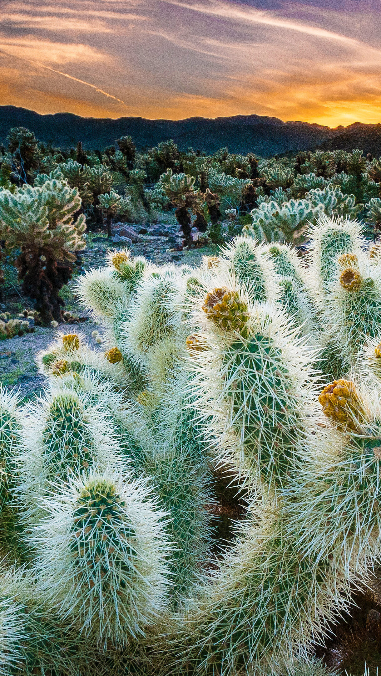 Cholla Cactus Garden Sunset Joshua Tree National Park Wallpaper