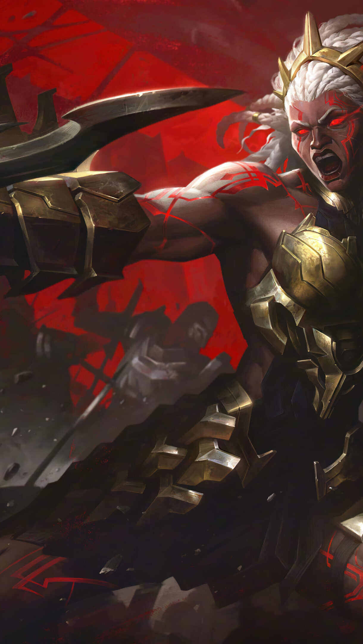 A striking 4K wallpaper showcasing the "Chosen of the Wolf" Ambessa skin from League of Legends, featuring Ambessa in powerful, wolf-themed armor with dark and mystical details, radiating strength and dominance, perfect for fans seeking a dramatic and legendary aesthetic for their screen. Simply click the download button to bring this masterpiece to life on your screen as a desktop wallpaper or save it for later in your picture collection.