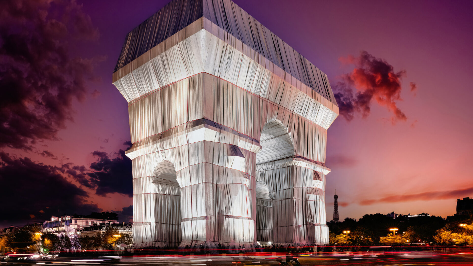 Christo Wrapped Arc de Triomphe Paris 2021 Night Wallpaper