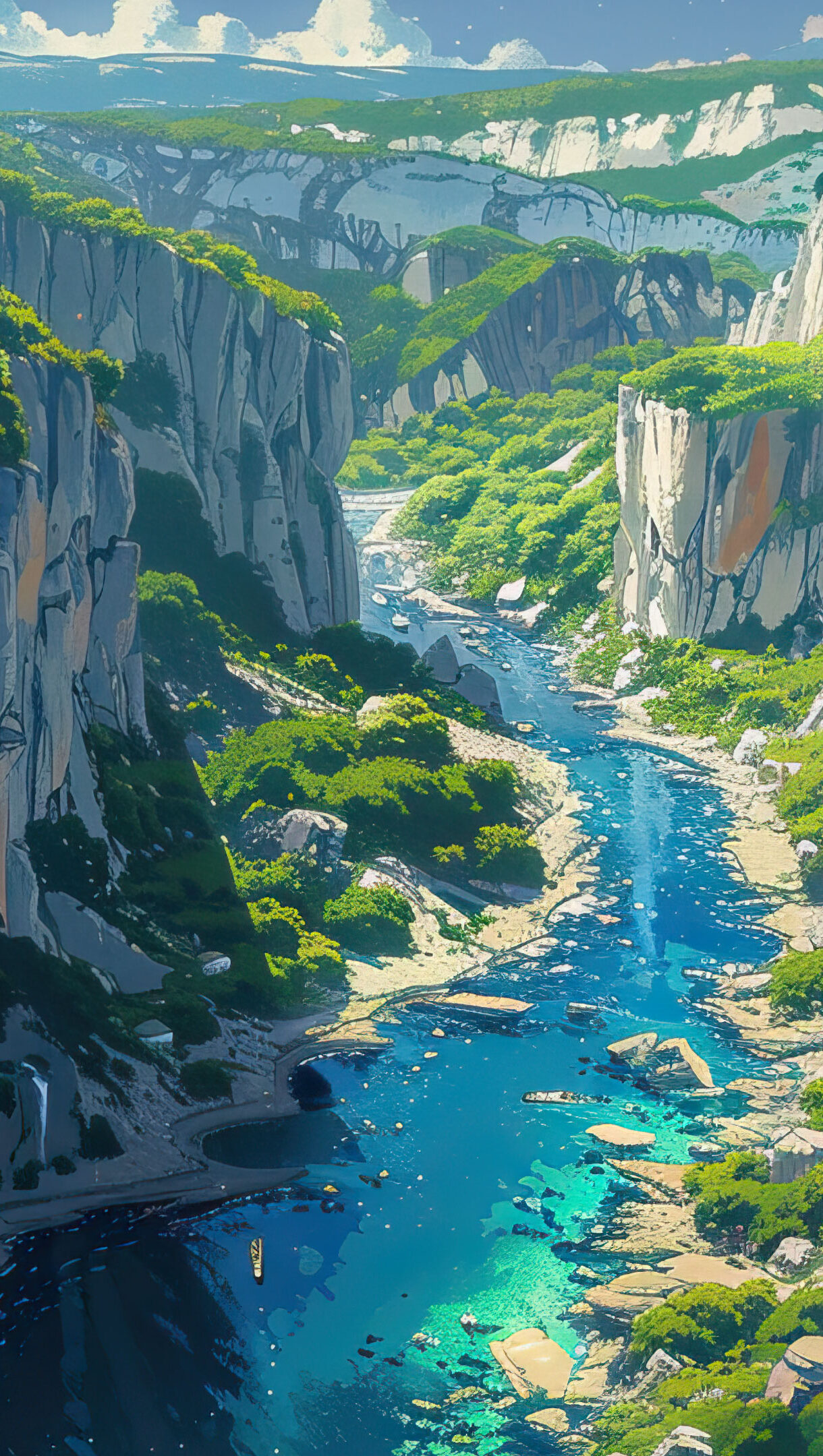 A breathtaking 4K wallpaper featuring a stunning cliffside river valley. The scene captures the serenity of a winding river flowing through lush greenery, with towering cliffs providing a majestic backdrop. Perfect for adding a touch of nature to your desktop or mobile screen.