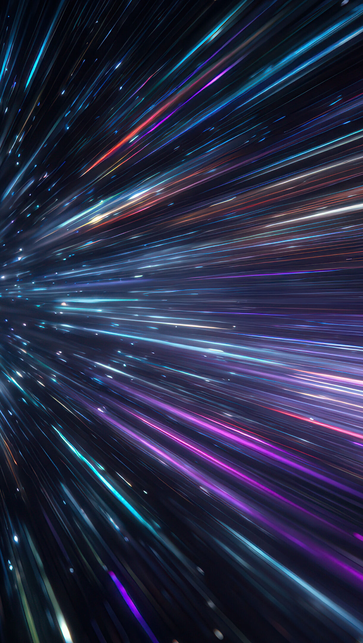 An exhilarating 4K wallpaper showcasing colorful light streaks in deep space, creating the illusion of traveling at warp speed. The vibrant blues, purples, and reds stretch into an immersive tunnel of light, conveying an electrifying journey through the cosmos.