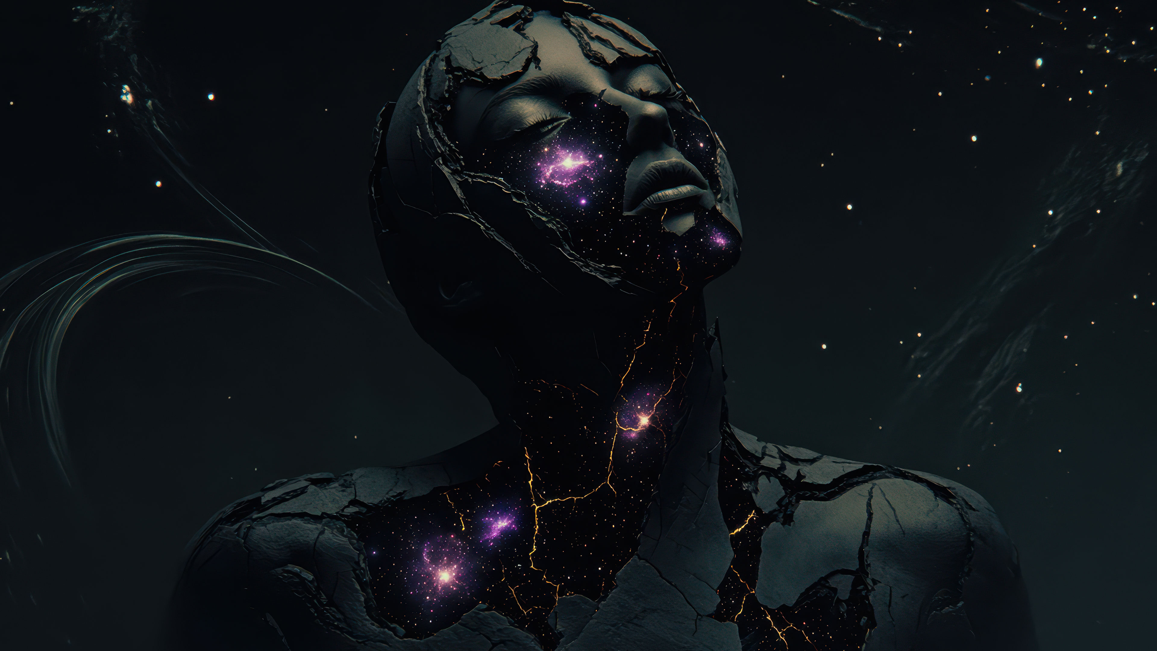 Cosmic Goddess Black Starstone Cracked Galaxy Wallpaper