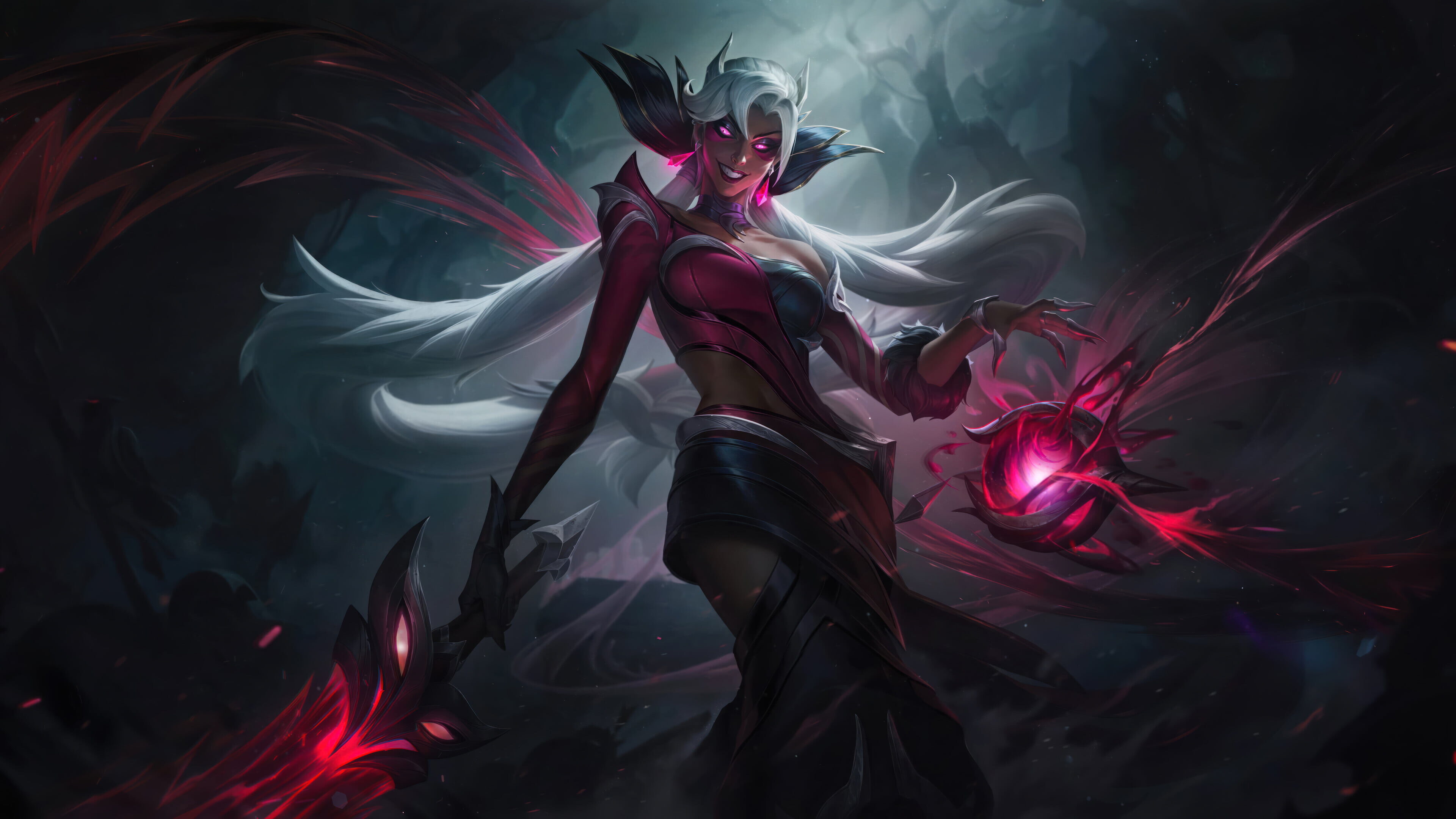 A spellbinding 4K wallpaper showcasing the mystical Coven Nilah skin, featuring Nilah, the enigmatic mage, bathed in an otherworldly radiance within the immersive realm of League of Legends. Simply click the download button to bring this masterpiece to life on your screen as a desktop wallpaper or save it for later in your picture collection.