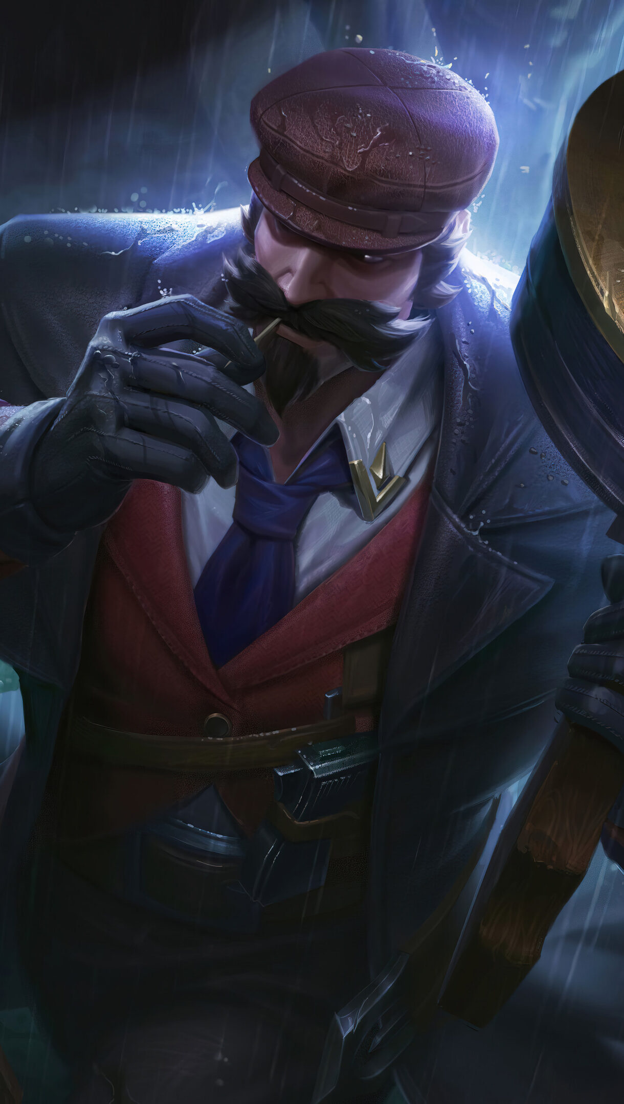 A high-resolution 4K wallpaper showcasing the Crime City Graves skin from the popular game League of Legends. Graves, the notorious outlaw, is depicted in the urban landscape of Crime City, exuding a sense of danger and intrigue. Simply click the download button to bring this masterpiece to life on your screen as a desktop wallpaper or save it for later in your picture collection.