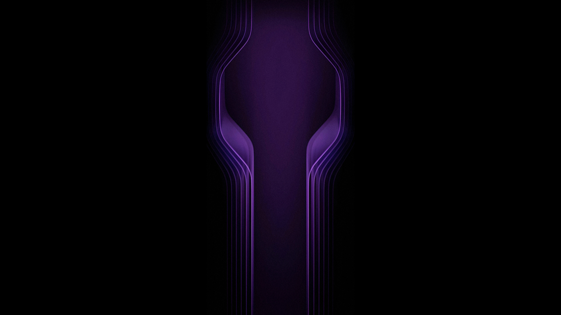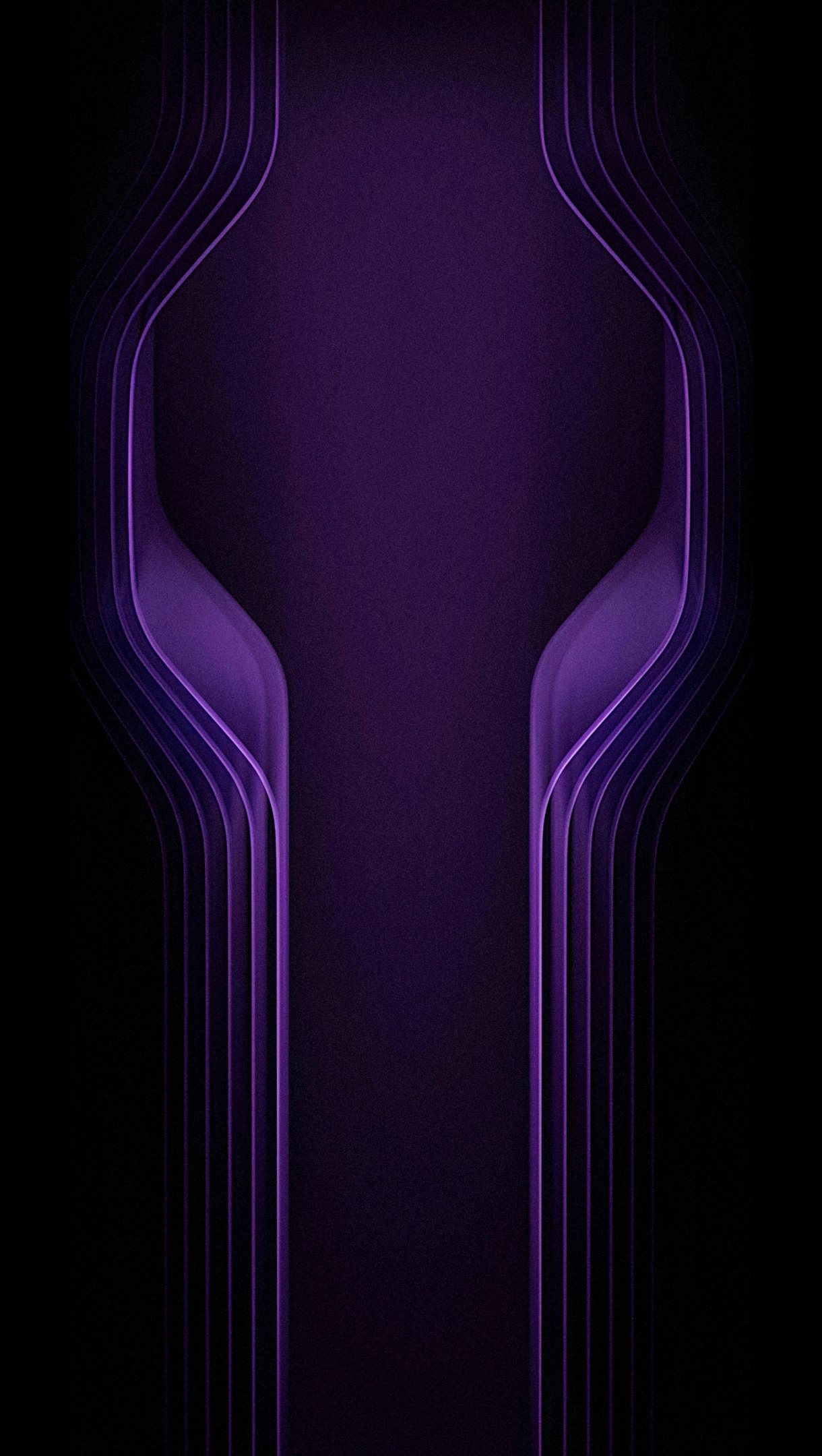 A deep 4K wallpaper displays a central, abstract design of flowing dark purple lines against a minimalist black background. These lines elegantly curve, varying from deep violet to luminous lavender, with a subtle textured gradient creating a sleek, almost three-dimensional effect.