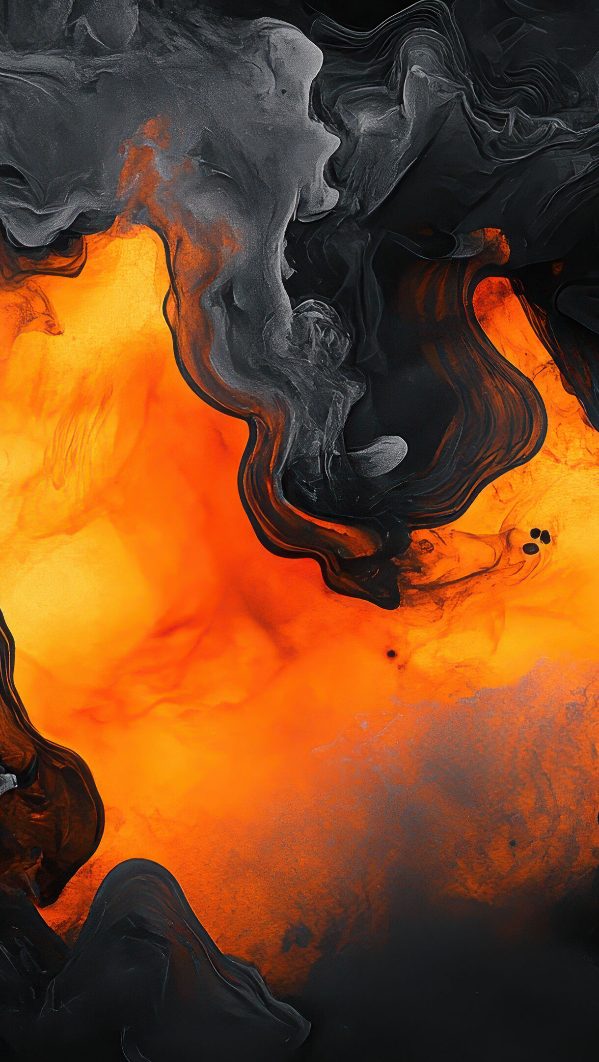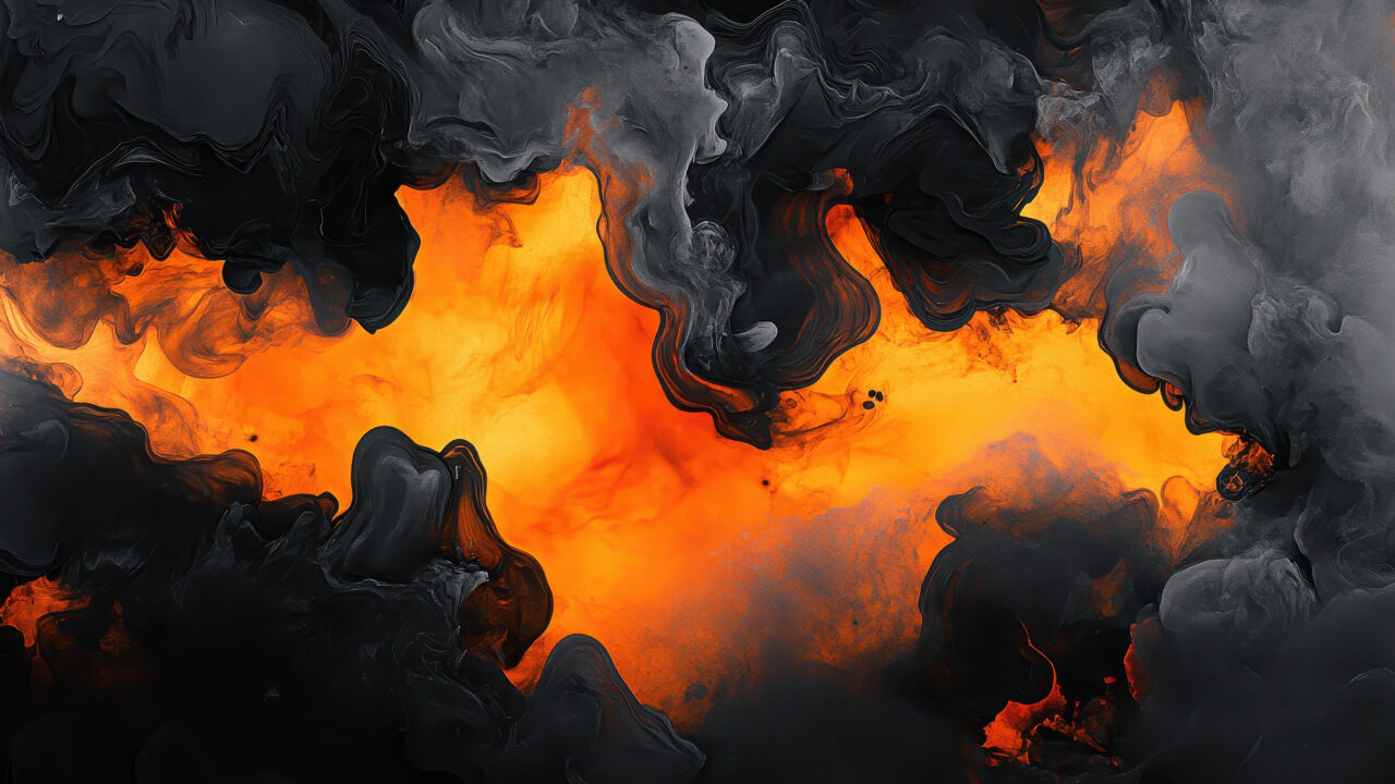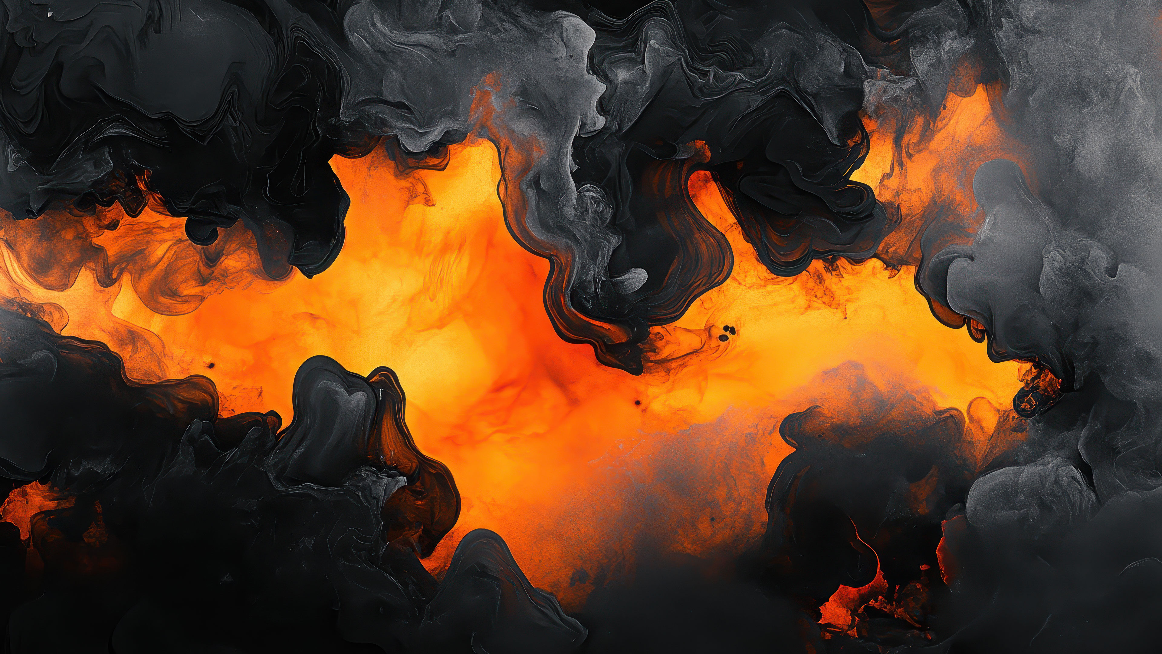 A stunning 4K wallpaper featuring vibrant flames bursting through dark smoke. The contrast between the glowing fire and the thick smoke creates a dramatic and intense visual, perfect for enhancing the aesthetic of your desktop or mobile background.