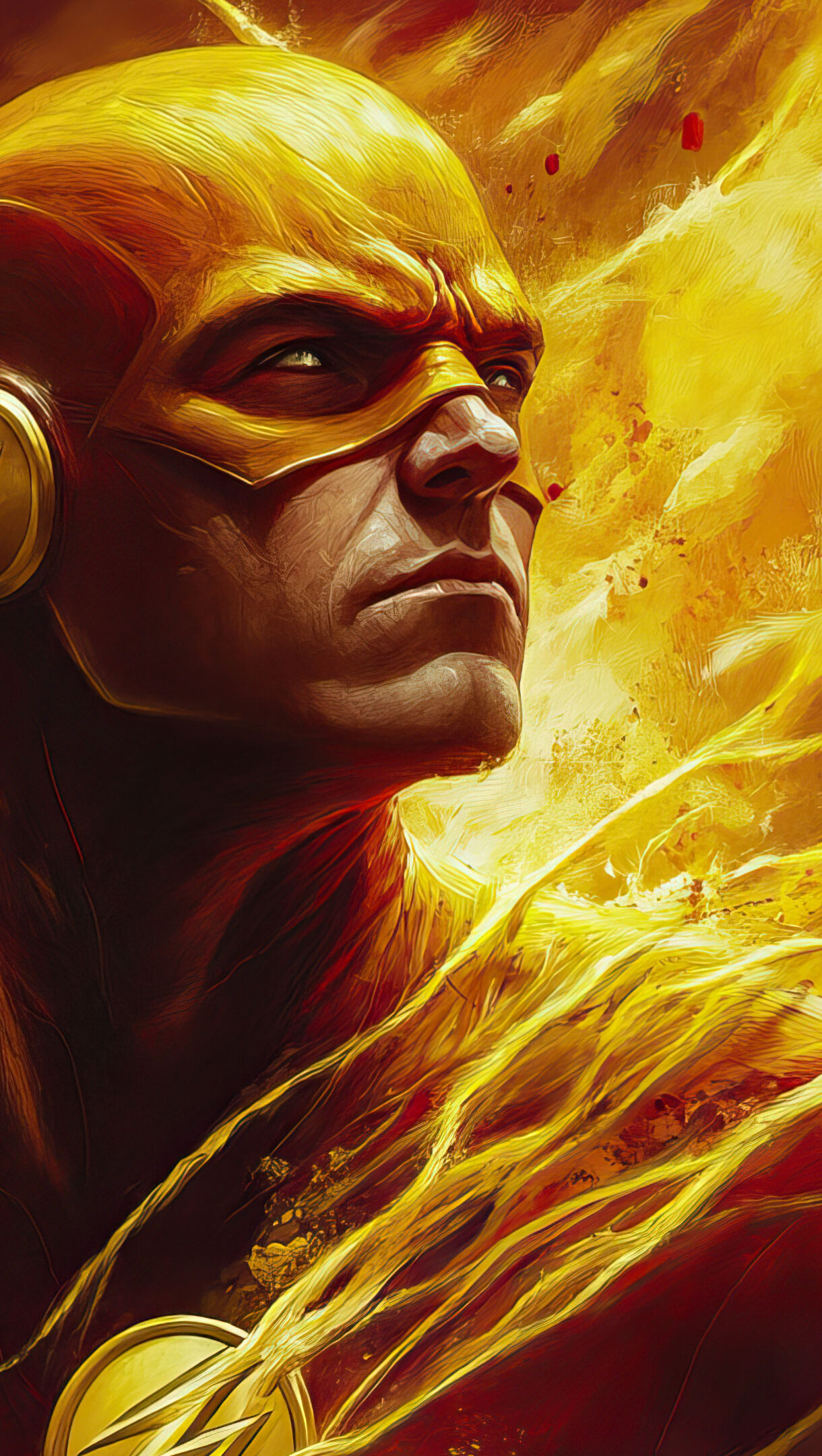 A dynamic 4K portrait wallpaper of the DC superhero Flash, capturing the character in action with vibrant colors and striking details, perfect for fans of comic book art and those looking to add an energetic touch to their screen. Simply click the download button to bring this masterpiece to life on your screen as a desktop wallpaper or save it for later in your picture collection.