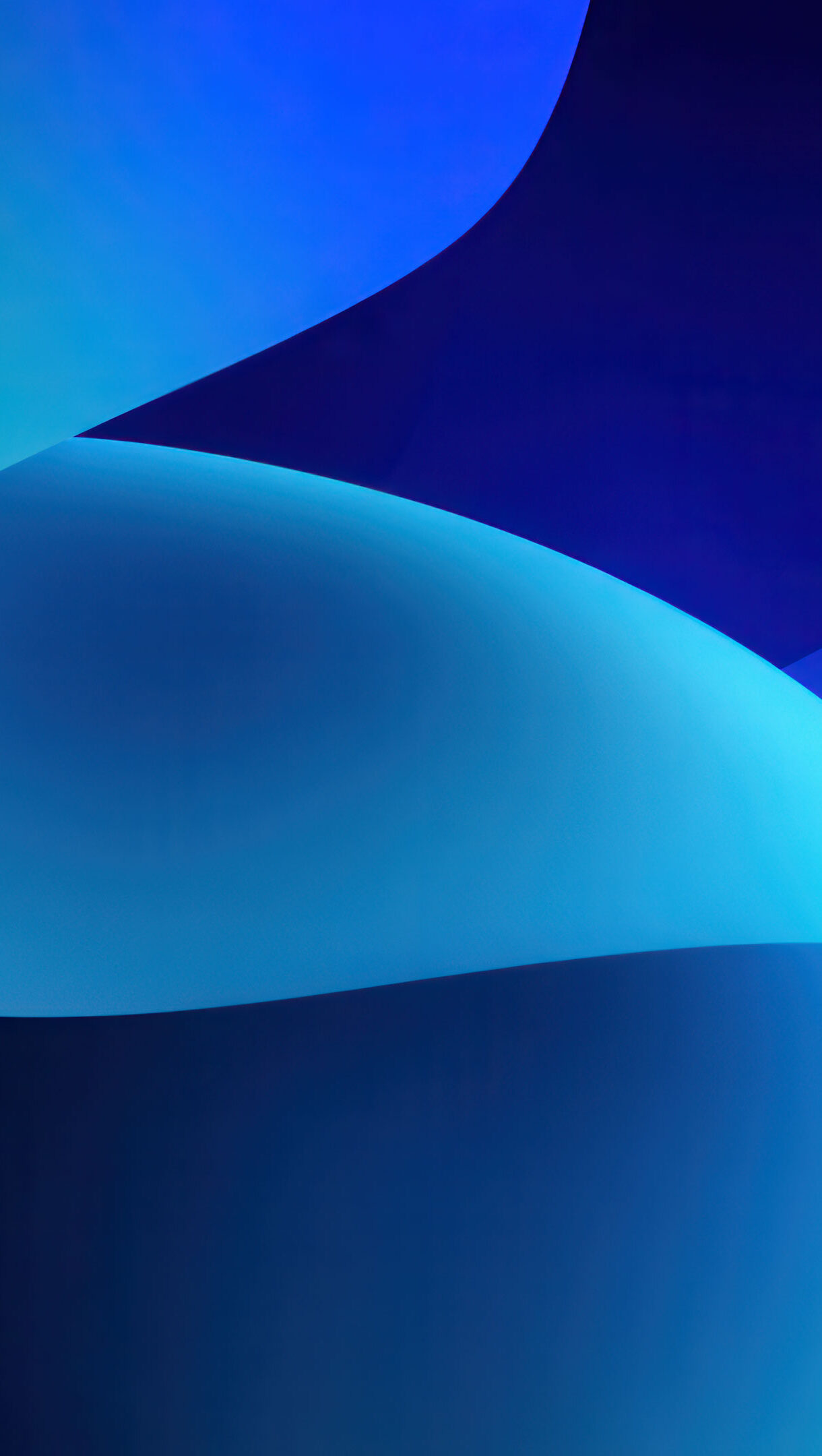 A mesmerizing 4K wallpaper of smooth, undulating abstract curves in shades of blue and cyan, creating a tranquil, oceanic depth. The interplay of brilliant aquamarine highlights and deep indigo shadows defines the fluid motion and luminous quality of the forms.