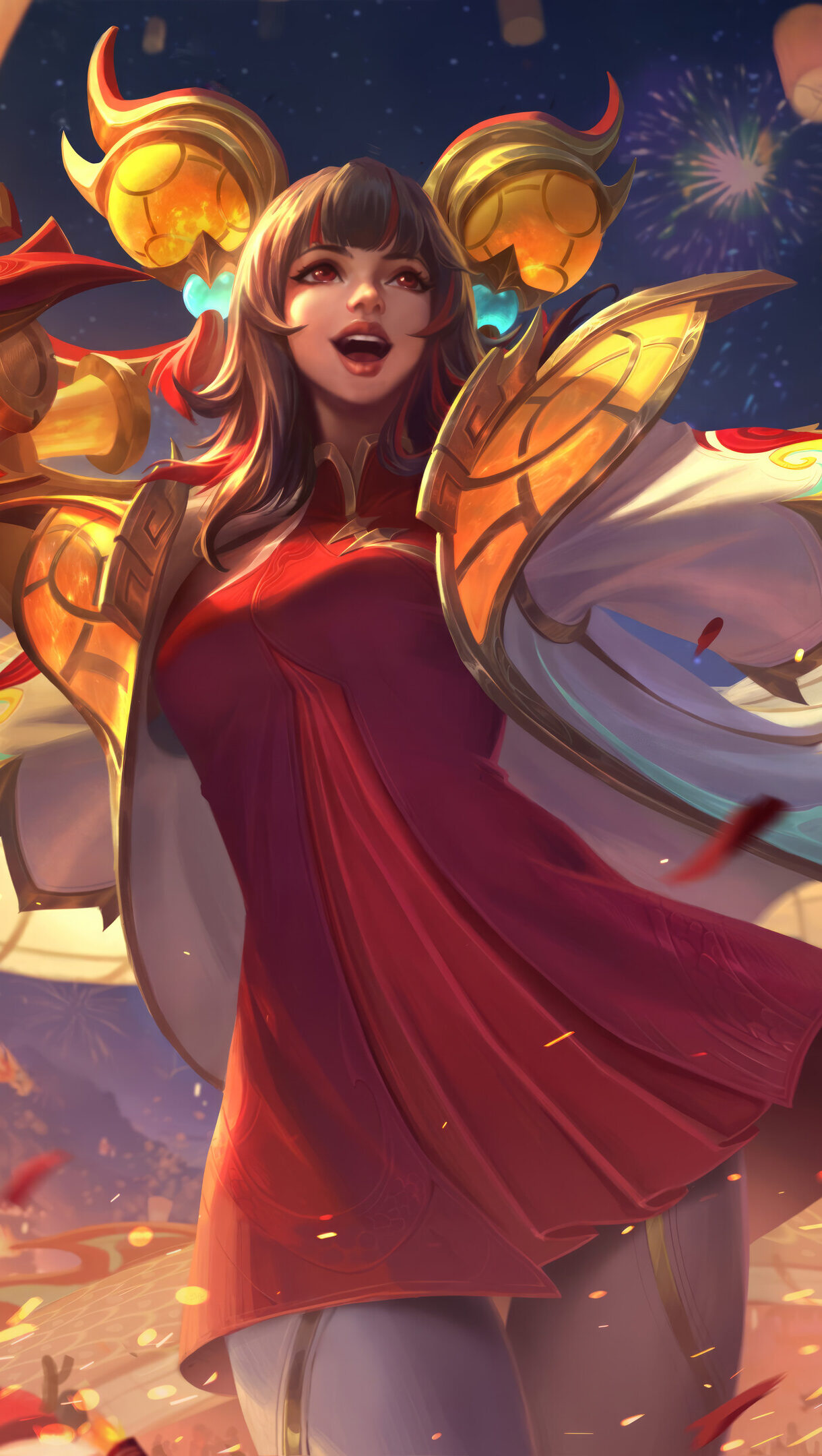 A stunning 4K wallpaper showcasing the majestic Dragon Lantern Zeri skin from Wild Rift. Zeri, the enigmatic sorceress, stands adorned in intricate dragon-themed attire, casting a spellbinding aura in the vibrant world of Wild Rift. Simply click the download button to bring this masterpiece to life on your screen as a desktop wallpaper or save it for later in your wallpaper collection.