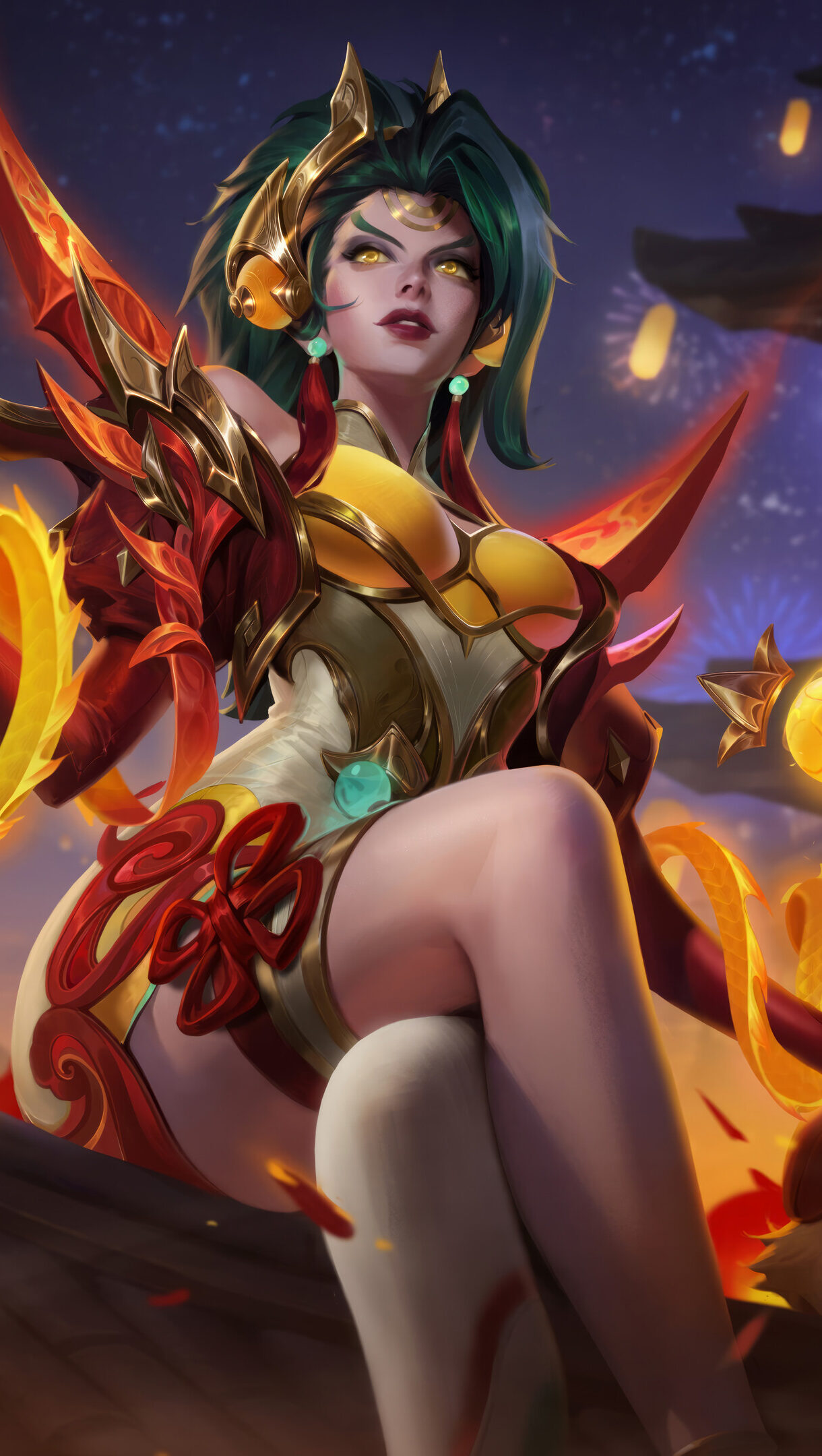 A mesmerizing 4K wallpaper showcasing the Dragon Lantern Zyra skin in Wild Rift. Zyra, the Enchanting Thorn, takes center stage in a breathtaking display of mythical beauty, surrounded by vibrant dragon lanterns that illuminate the fantastical world of Wild Rift. Simply click the download button to bring this masterpiece to life on your screen as a desktop wallpaper or save it for later in your wallpaper collection.
