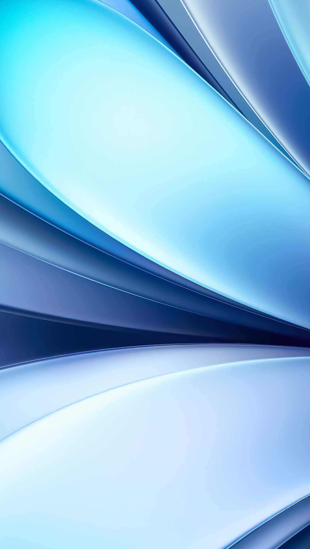 A vibrant 4K wallpaper showcasing dynamic, layered waves of abstract blue forms. Its fluid contours gracefully transition through shades from deep indigo to bright aquamarine, creating a sense of tranquil yet powerful motion.