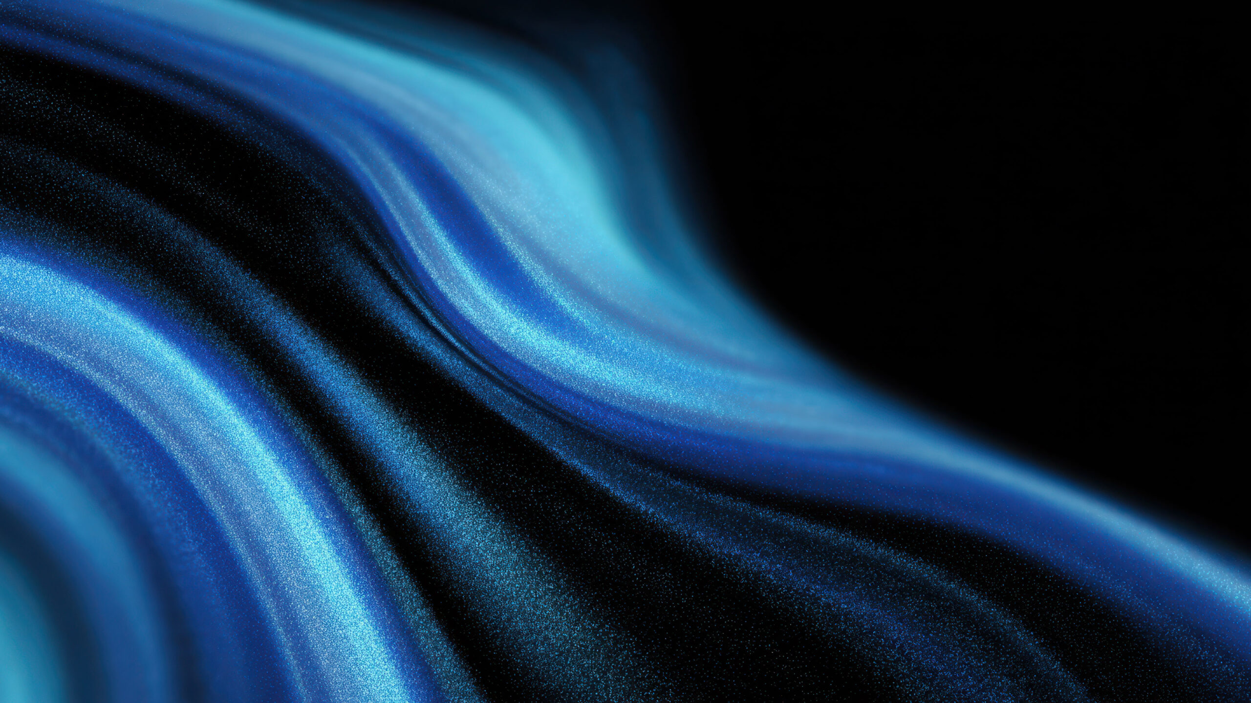 A mesmerizing 4K wallpaper of dynamic blue glitter waves curving across a dark, abstract space. The deep to bright blue hues are accentuated by countless sparkling particles, creating a sense of shimmering depth and fluid motion against the black void.