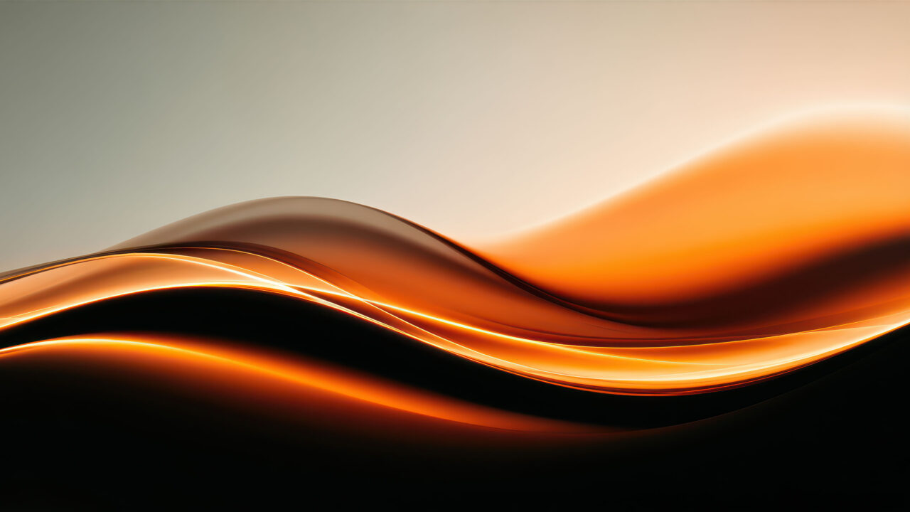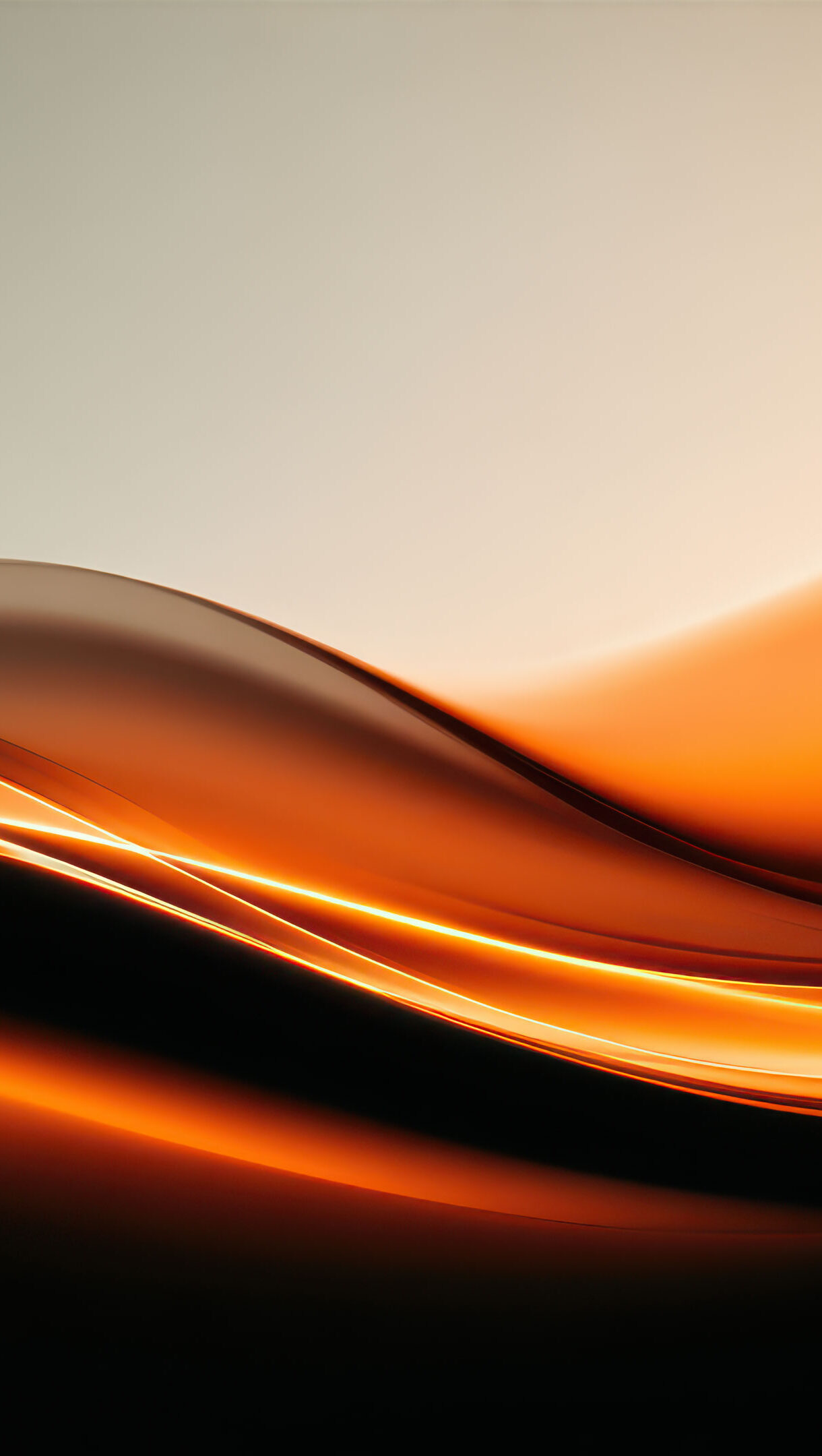 A mesmerizing 4K wallpaper showcases dynamic tranquil abstract digitl art, featuring fluid glowing orange waves against a softly muted background. Brilliant streaks of luminous orange define the graceful curves, creating a serene yet vibrant interplay of light and shadow.