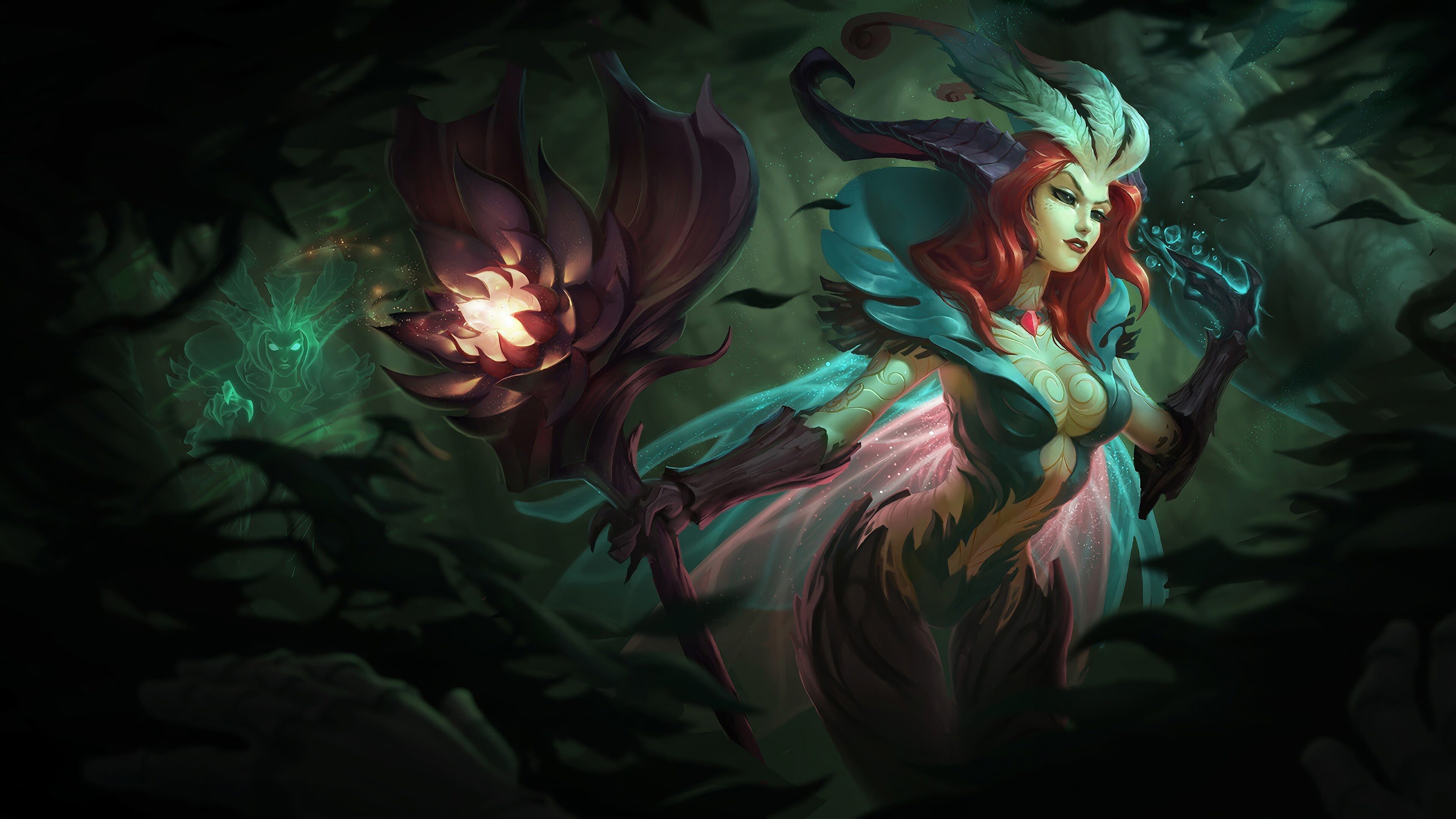 A beautiful 4K desktop wallpaper featuring LeBlanc in her Elderwood skin from League of Legends. Unleash Your Inner Creativity with High-Quality Wallpapers. AI-generated and sourced wallpapers available in High Quality Resolution. Simply click the download button to bring these masterpieces to life on your screen as a desktop wallpaper or save it for later in your picture collection.